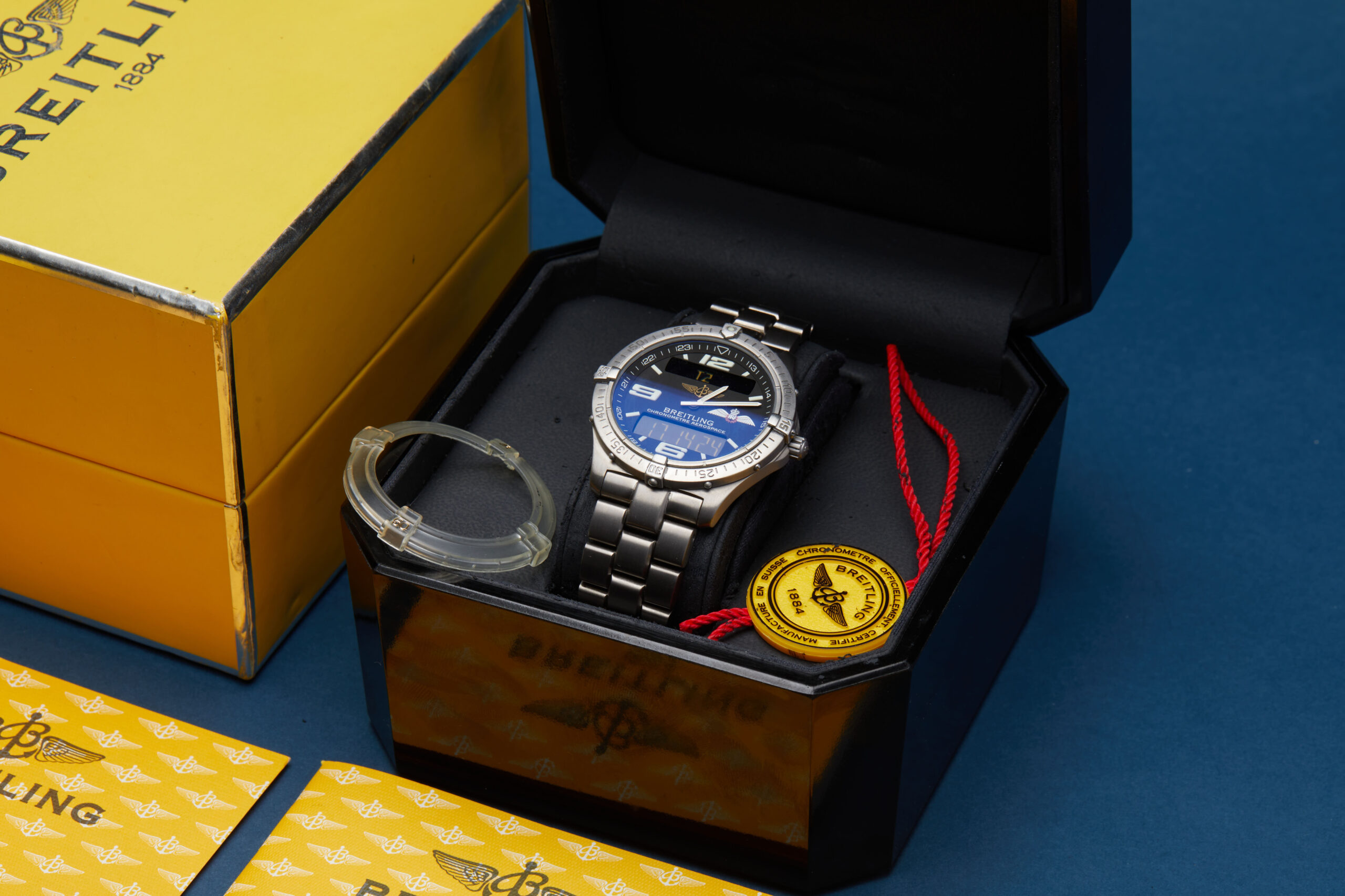 The watch is supplied with its outer box, inner presentation case, international warranty booklet, authorized distributors manual, Aerospace manual, and official COSC certificate, swing tag and bezel protector.