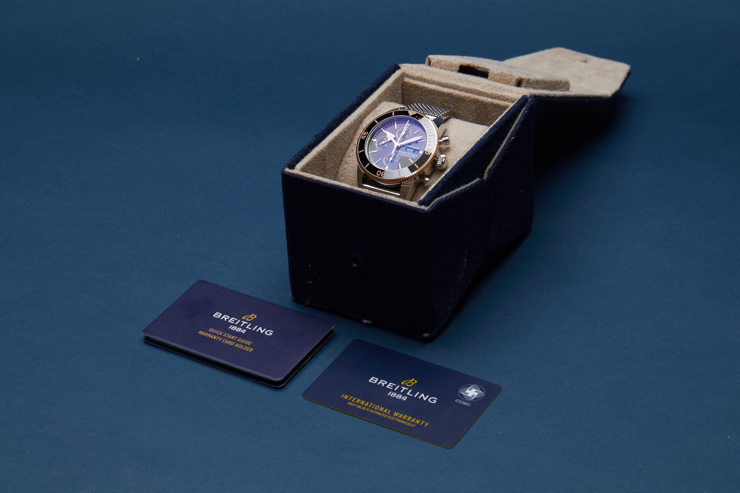 The watch is supplied with its original Breitling box (no outer case), quick start manual and warranty card.