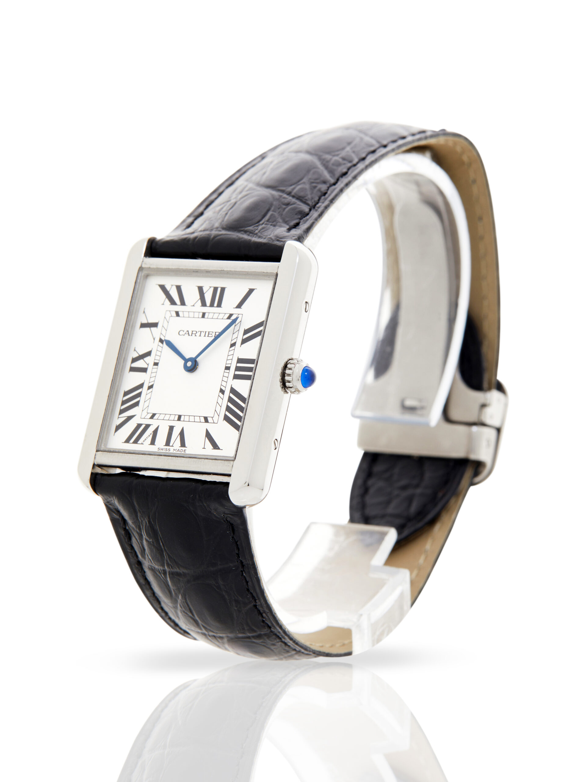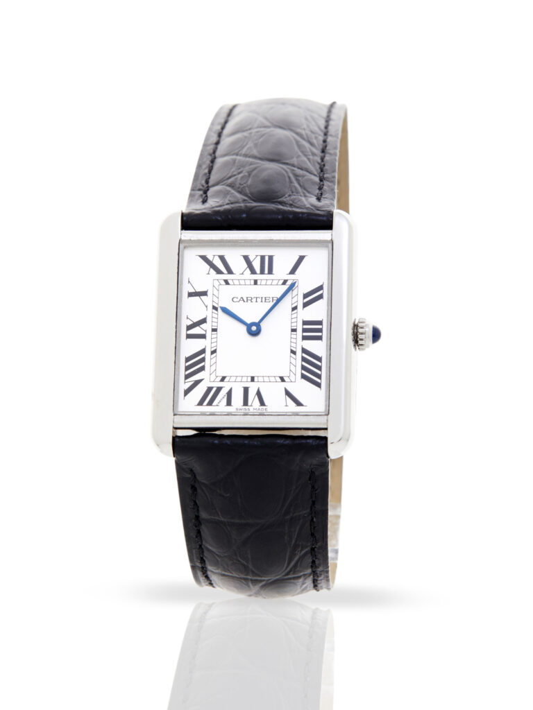 Presented in excellent condition is this lovely example of a 2018 Cartier Tank Solo 3169. The watch features a 27 x 35mm stainless steel case, silver dial with black Roman numerals and is coupled to brand new alligator strap with a folding clasp. Having been professionally tested for condition, it’s deemed to be running very well and is showing only limited signs of wear.