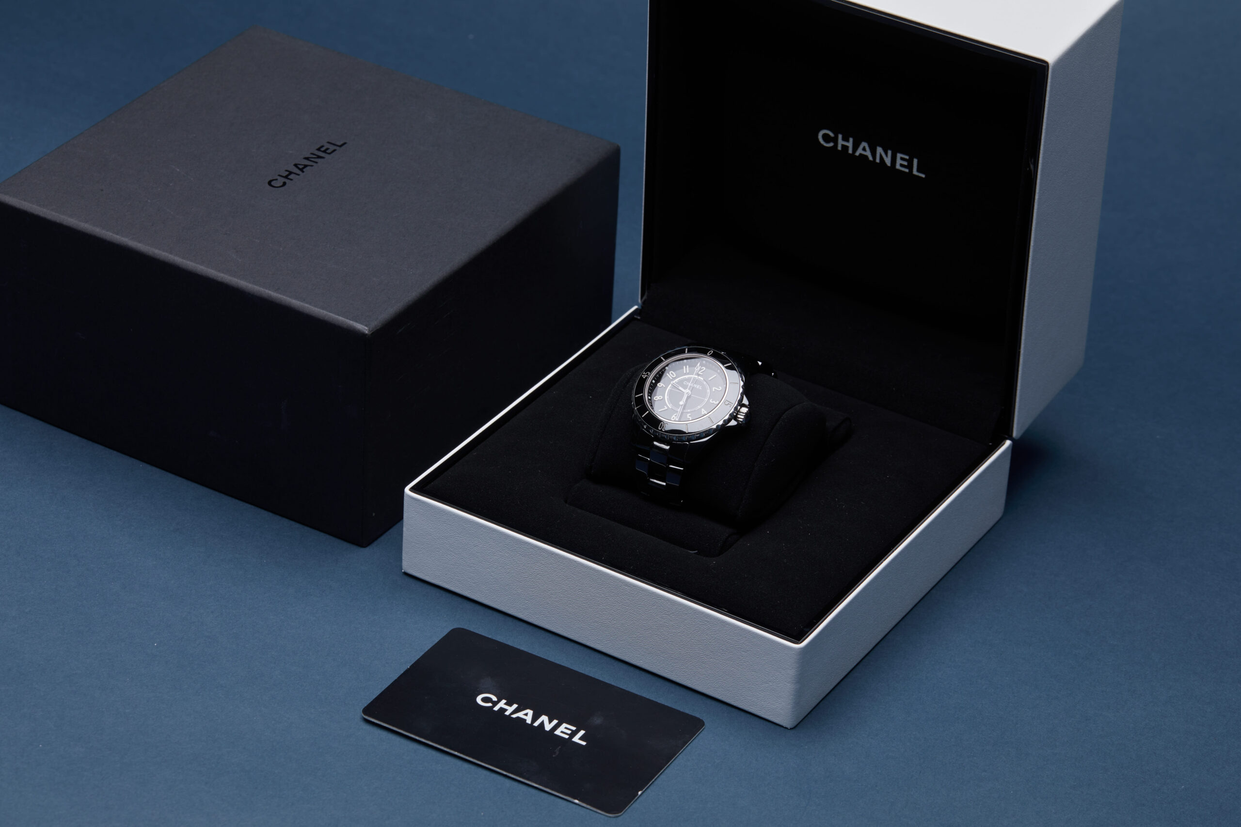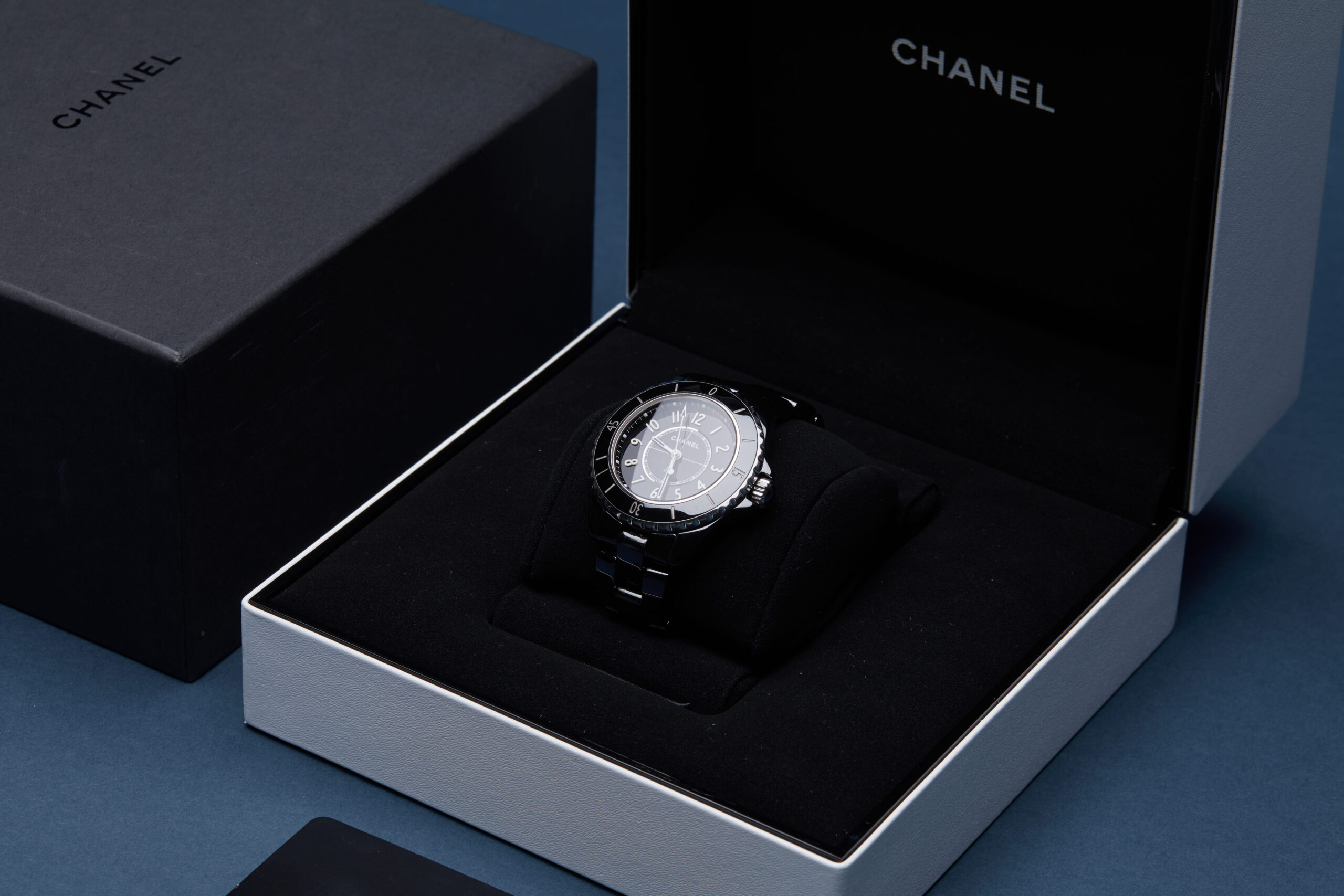 Presented in excellent condition is this lovely example of a 2024 Chanel J12 H5695. The watch features a 33mm black ceramic case, black dial with Arabic numerals, stainless steel bezel with black ceramic insert and is coupled to a black ceramic bracelet with a double folding clasp. Having been professionally tested for condition, it’s deemed to be running very well and is showing only limited signs of wear.