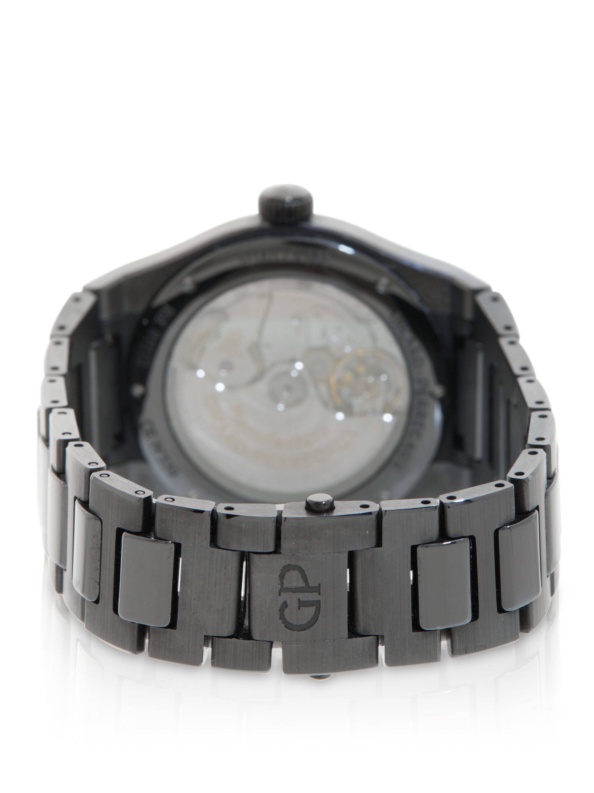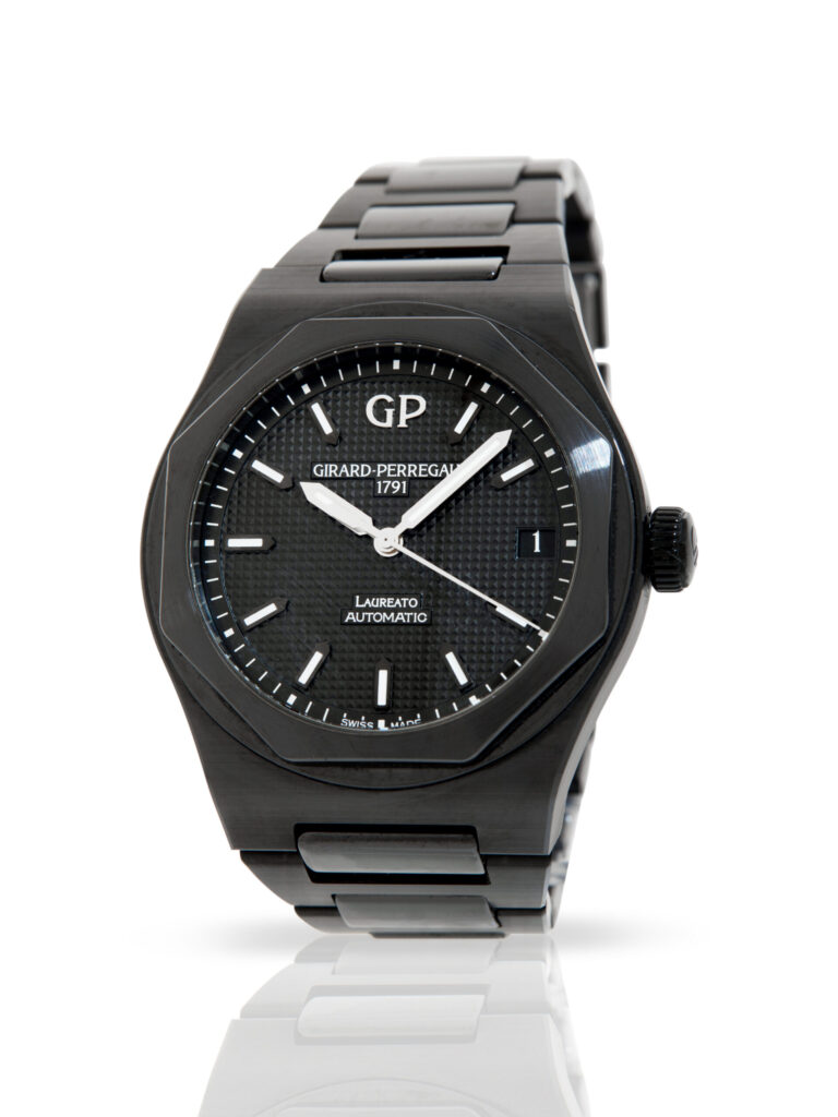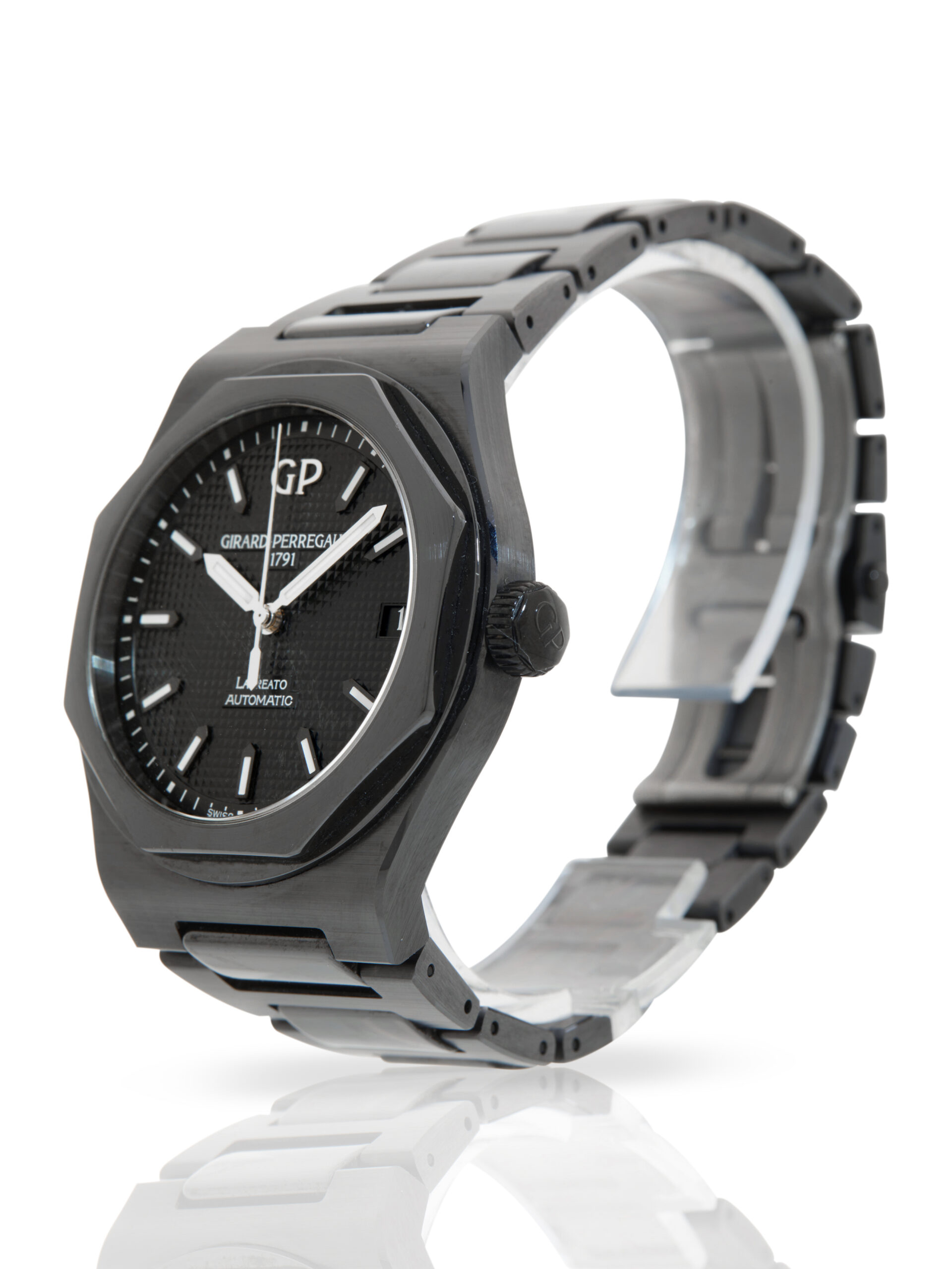 Presented in excellent condition is this stunning example of a 2019 Girard Perregaux Laureato 81010-32-631-32A. The watch features a 42mm black ceramic case, black dial with luminescent hour markers, black ceramic bezel and is coupled to a black ceramic bracelet with a double folding clasp. Having been professionally tested for condition and accuracy, it’s deemed to be running perfectly and is showing barely any signs of wear.