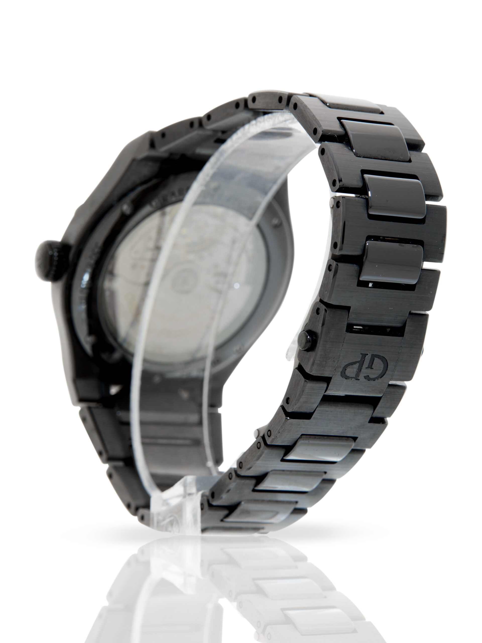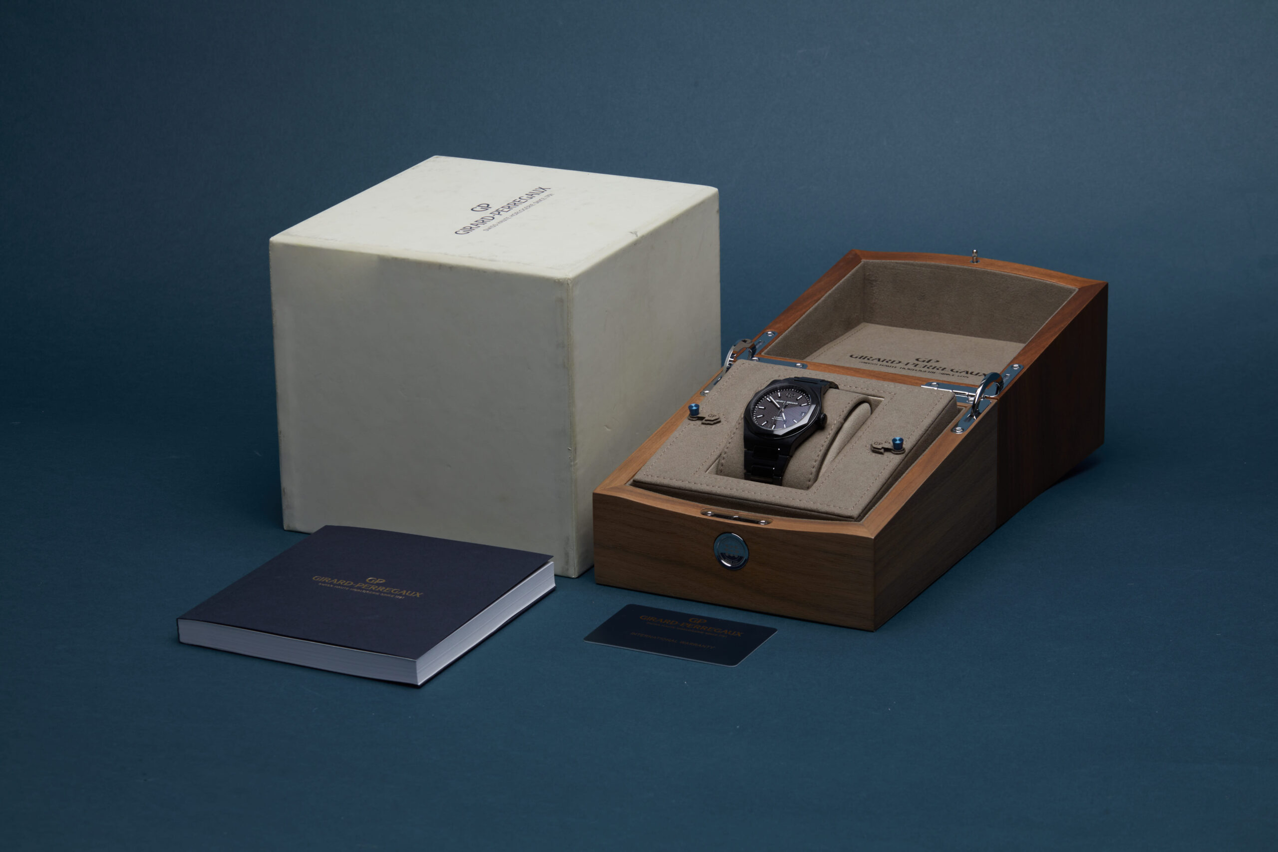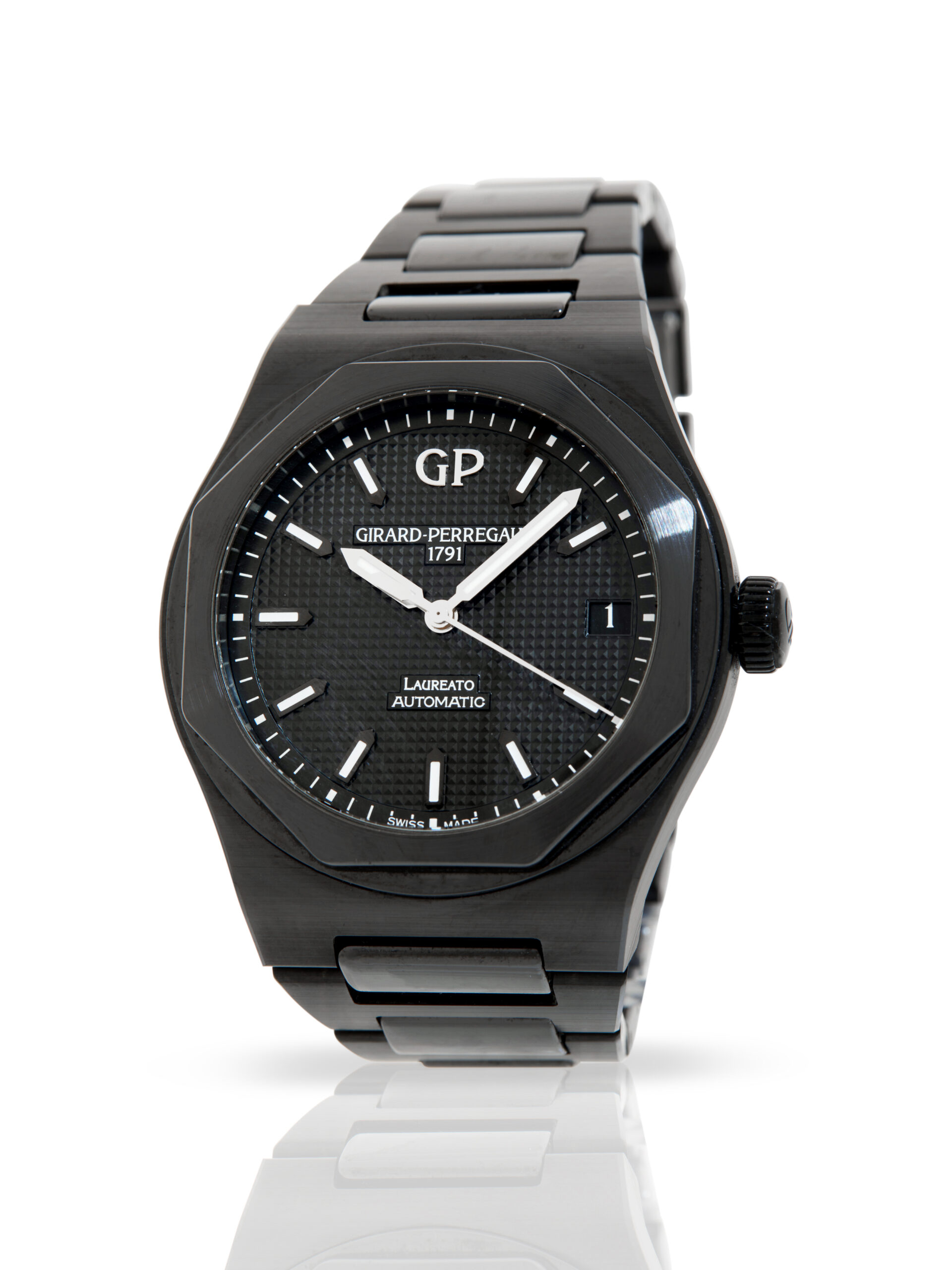 Presented in excellent condition is this stunning example of a 2019 Girard Perregaux Laureato 81010-32-631-32A. The watch features a 42mm black ceramic case, black dial with luminescent hour markers, black ceramic bezel and is coupled to a black ceramic bracelet with a double folding clasp. Having been professionally tested for condition and accuracy, it’s deemed to be running perfectly and is showing barely any signs of wear.