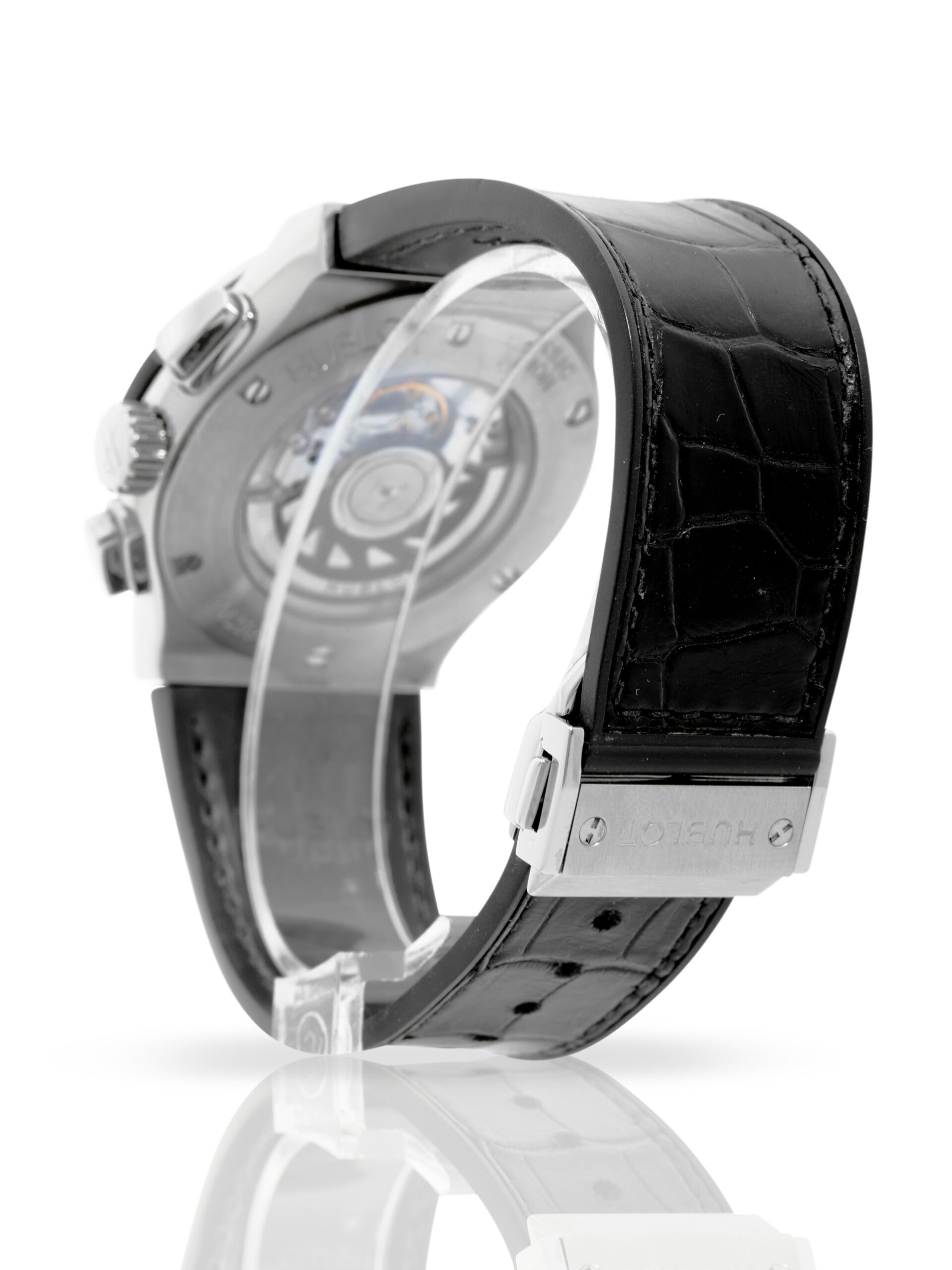 Presented in fantastic condition is this outstanding example of a 2014 Hublot Classic Fusion 521.NX.1170.LR. The watch features a 45mm titanium case, black chronograph baton dial, titanium bezel and is coupled to a black rubber strap with a black alligator outer layer. Having been professionally tested for condition and accuracy, it’s deemed to be running very well and is showing only minor signs of wear.