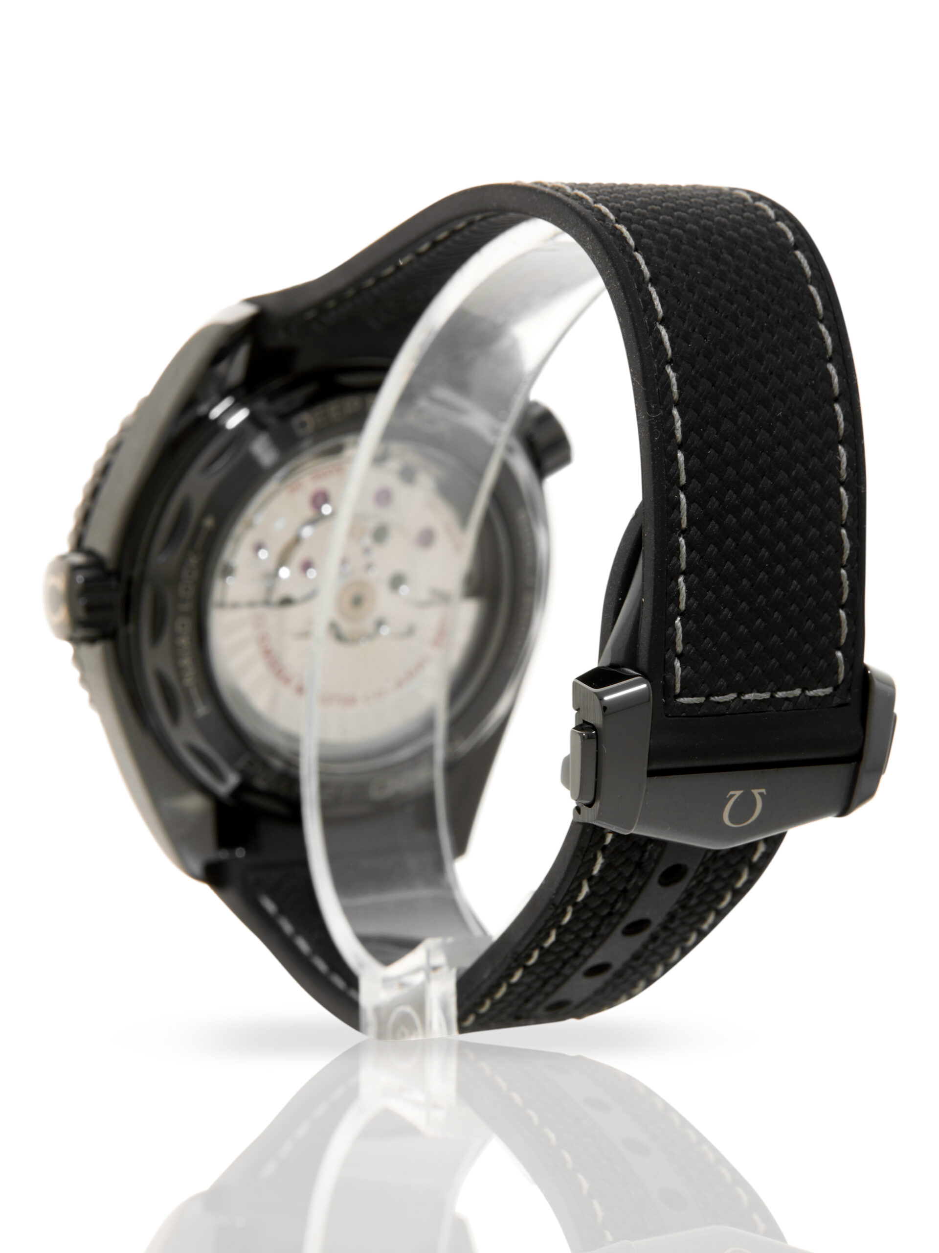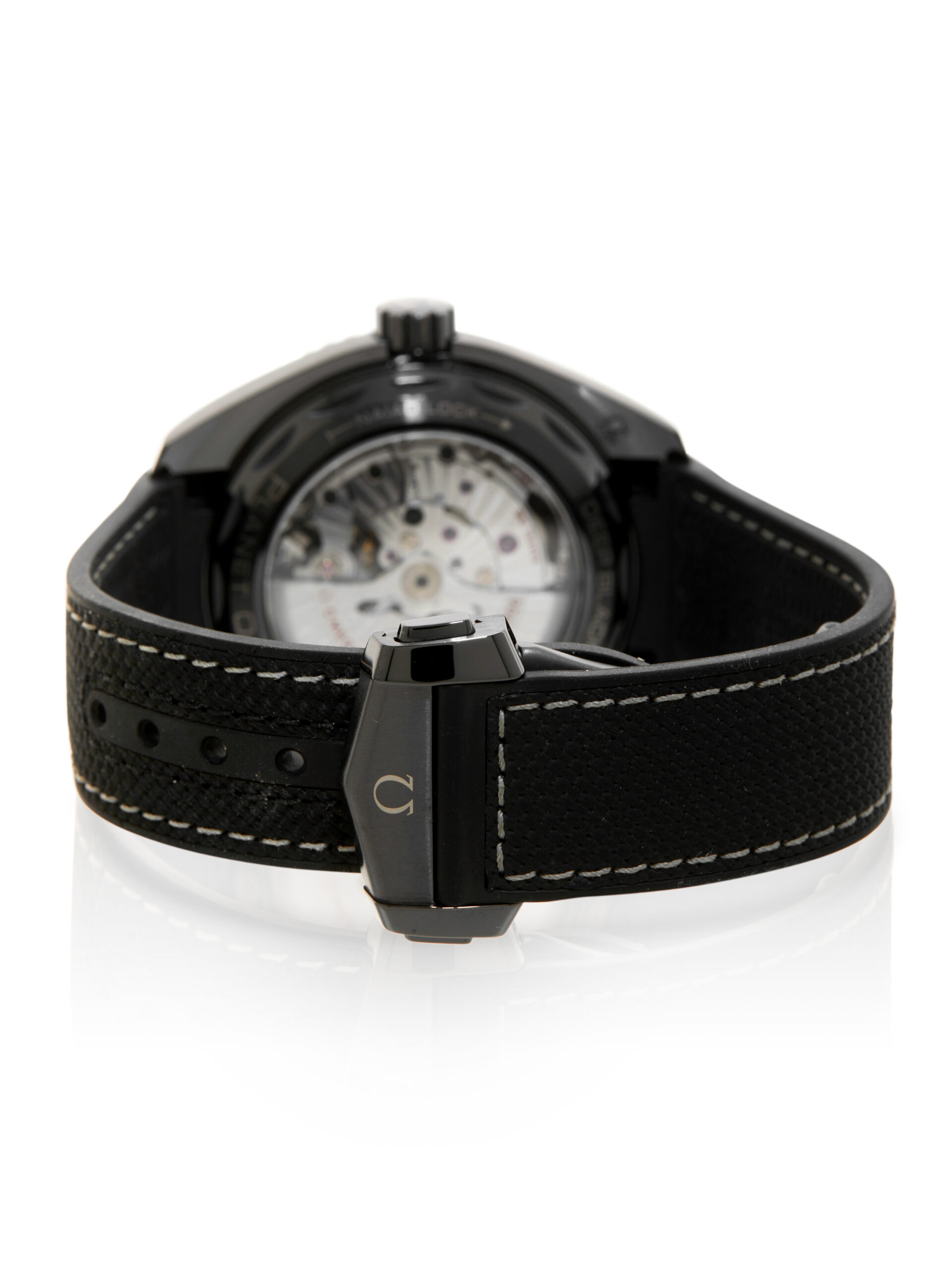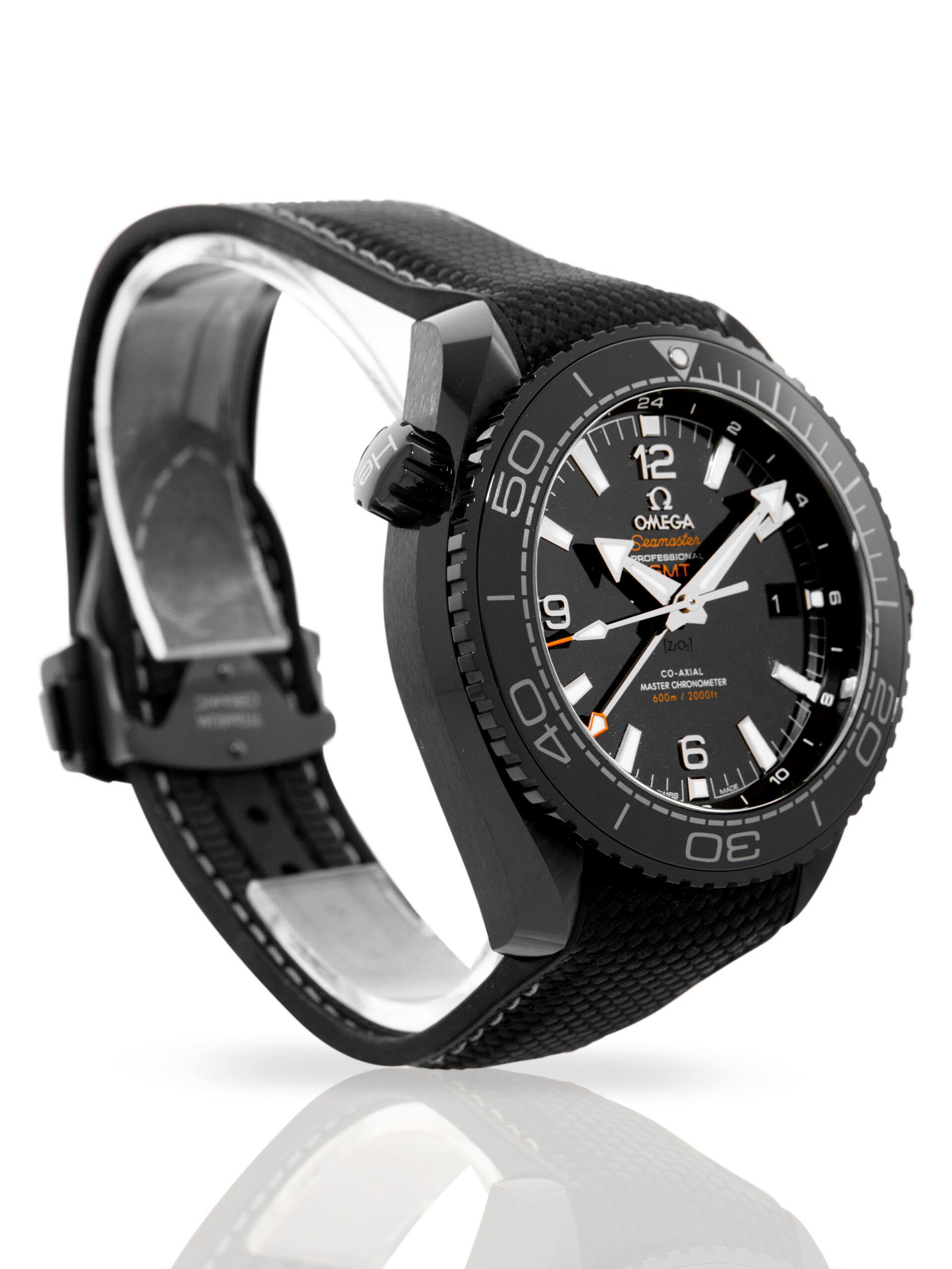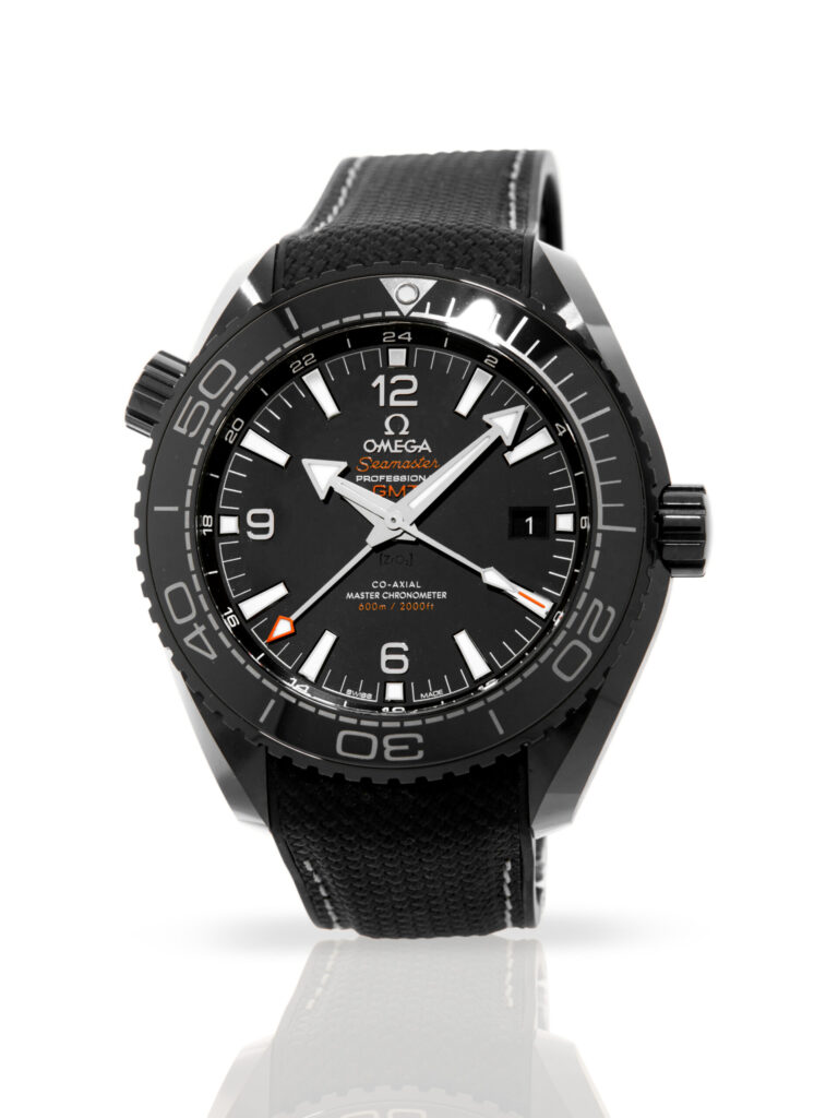 This stealthy example of a 2020 Omega Seamaster Planet Ocean 600M 215.92.46.22.01.001 features a 45.5mm black ceramic case, black ceramic bezel, black dial with luminescent hour markers, GMT function, date display and is coupled to a black rubber strap with a textile outside layer and a folding clasp. Having been professionally tested for condition and accuracy, it’s deemed to be running perfectly and is showing minor signs of wear.