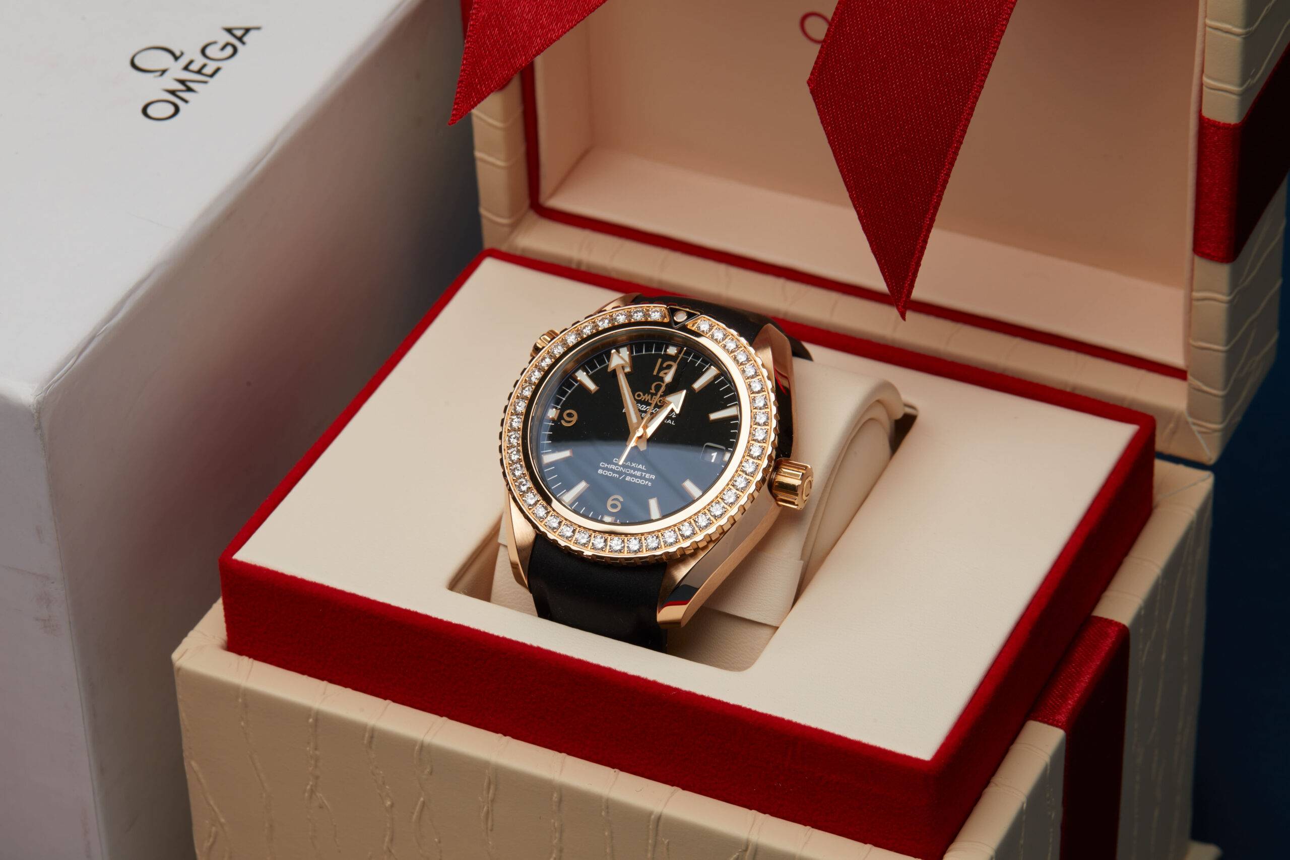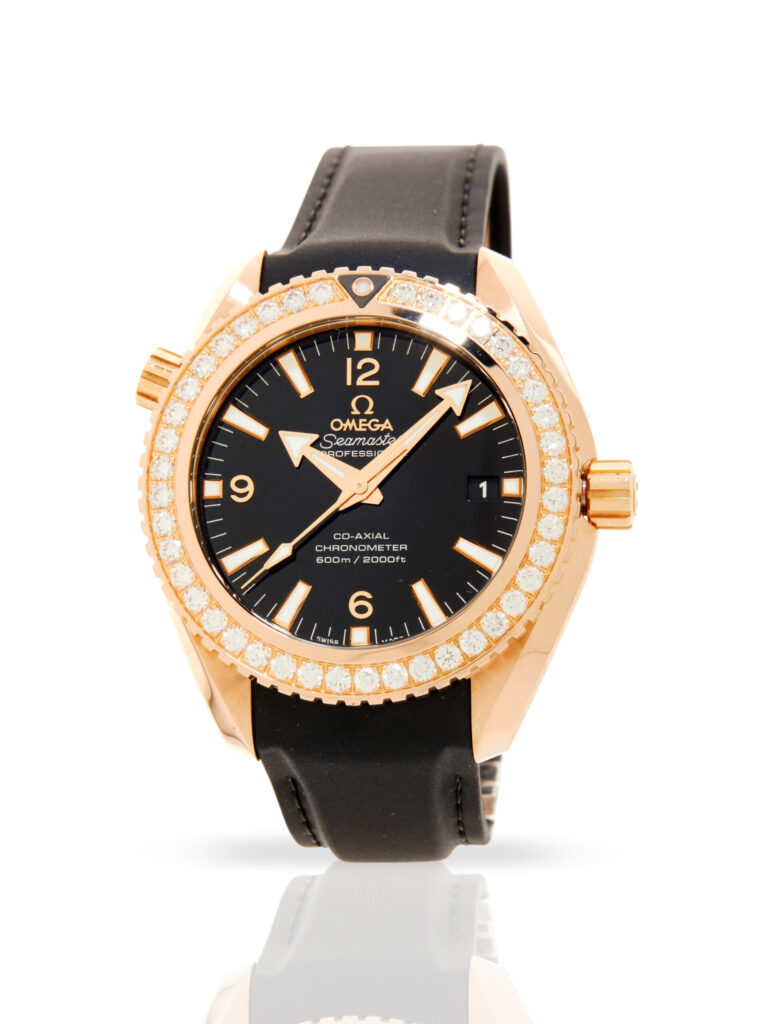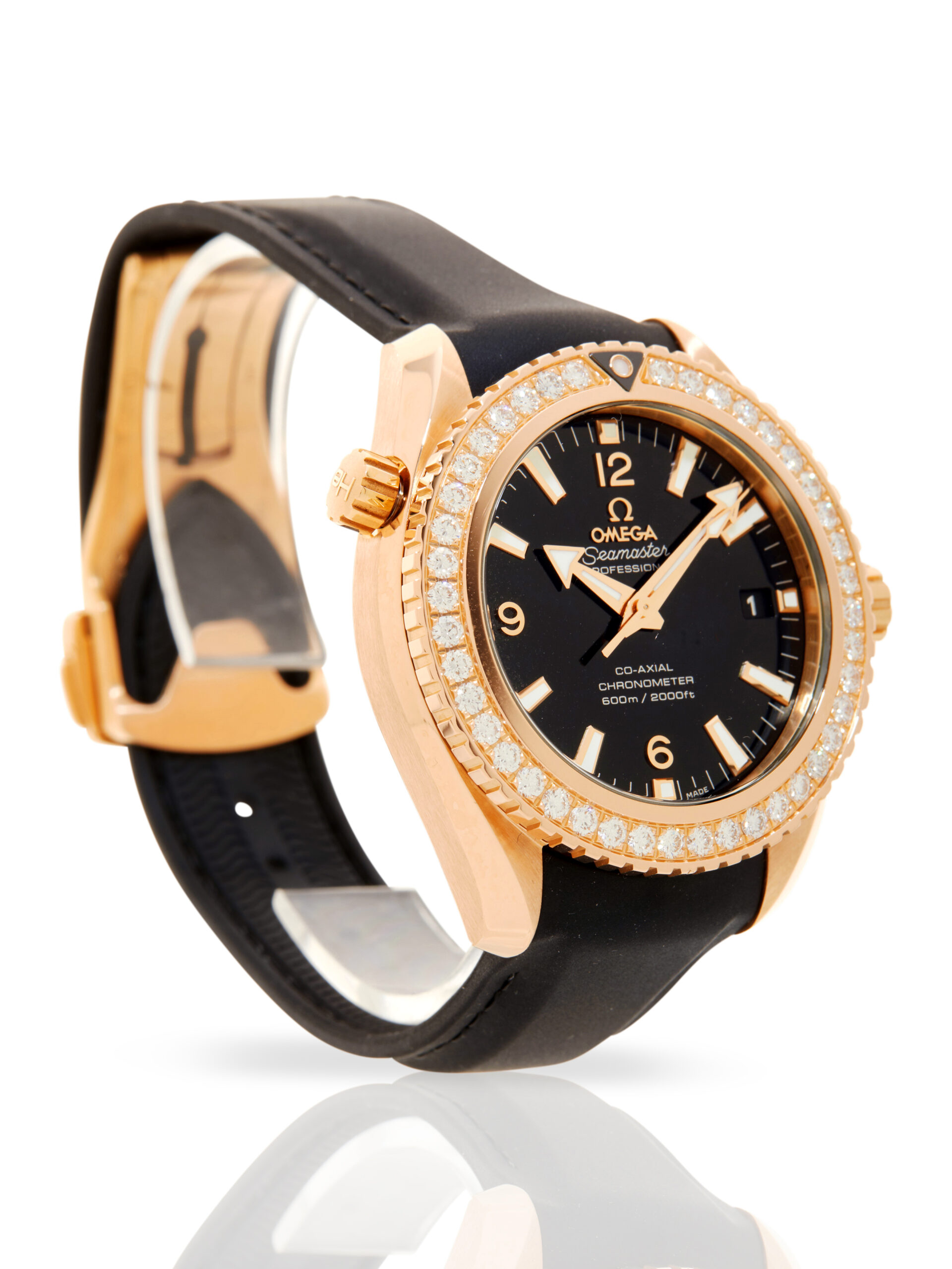Presented in excellent condition is this robust example of a 2022 Omega Seamaster Planet Ocean 600M 232.58.42.21.01.001. The watch features a 42mm 18K red gold case, diamond-set bezel, black dial with luminous indices and numerals and is coupled to a black rubber strap. Having been professionally tested for condition and accuracy, it’s deemed to be running perfectly and is showing very limited signs of wear.