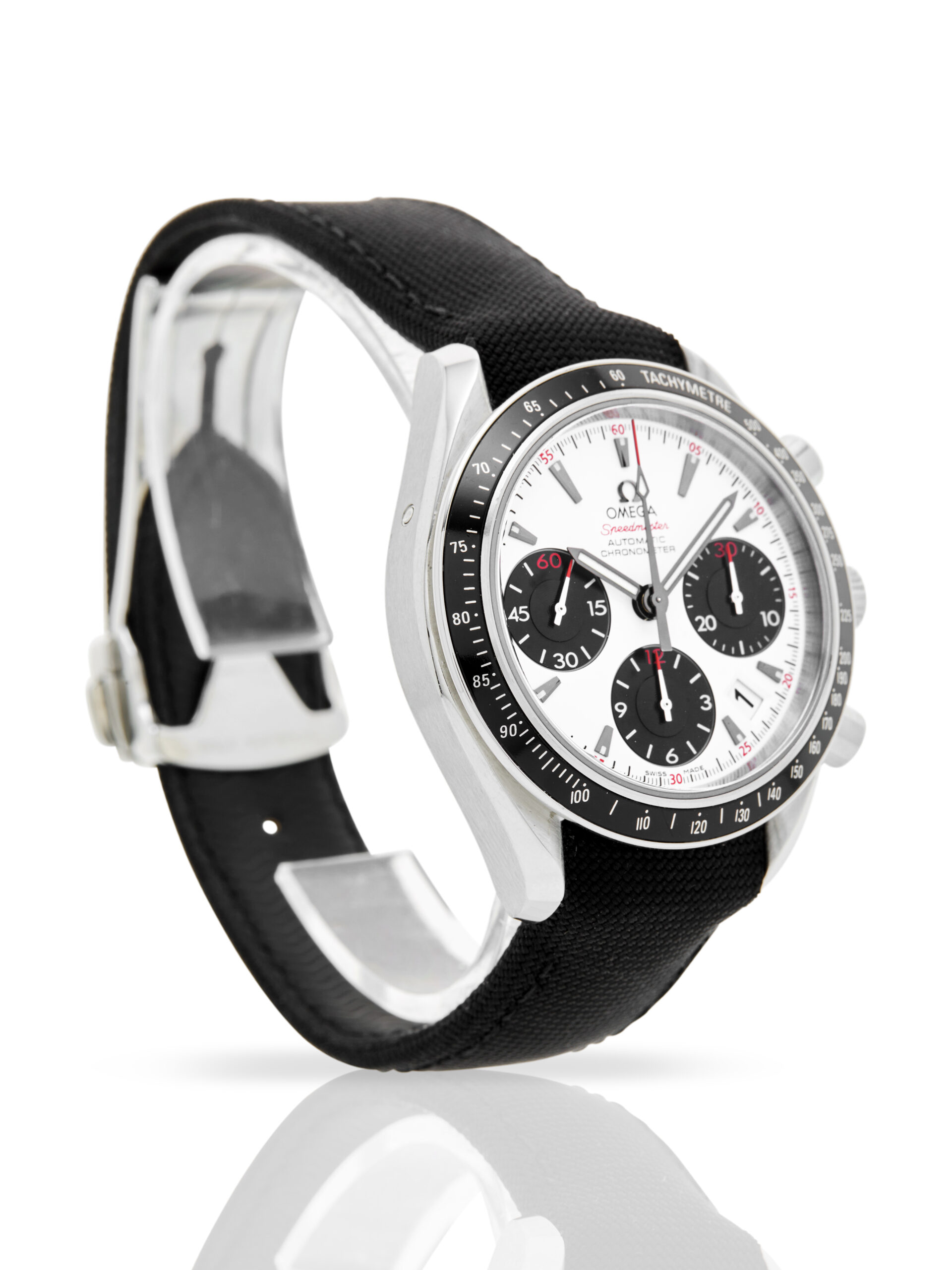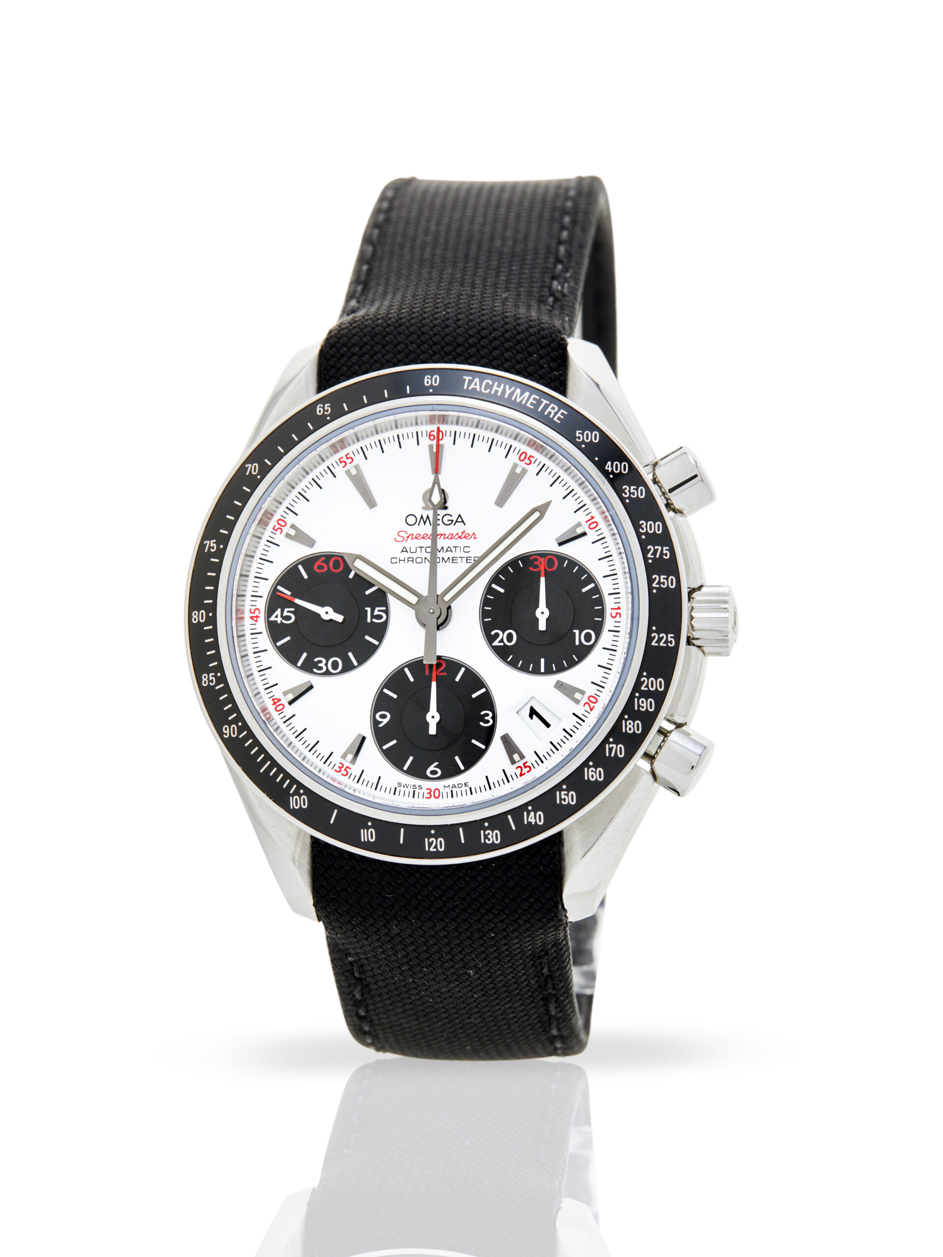 Presented in fantastic condition is this great example of a 2012 Omega Speedmaster Date 323.32.40.40.04.001. The watch features a 40mm stainless steel case, white chronograph dial with black sub-dials, date display and is coupled to a black textile strap with a folding clasp. Having been professionally tested for condition and accuracy, it’s deemed to be running very well and is showing only very minor signs of wear.