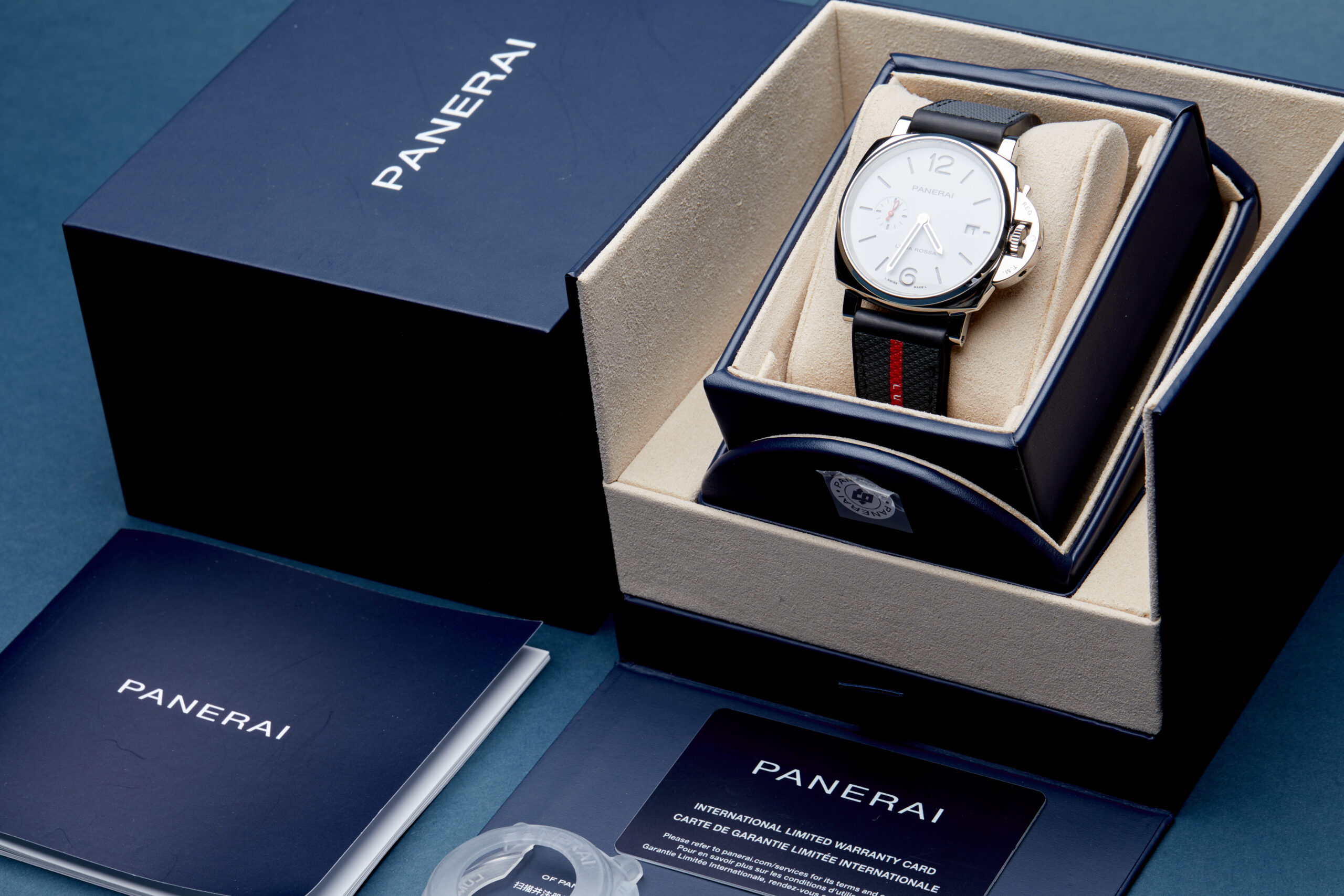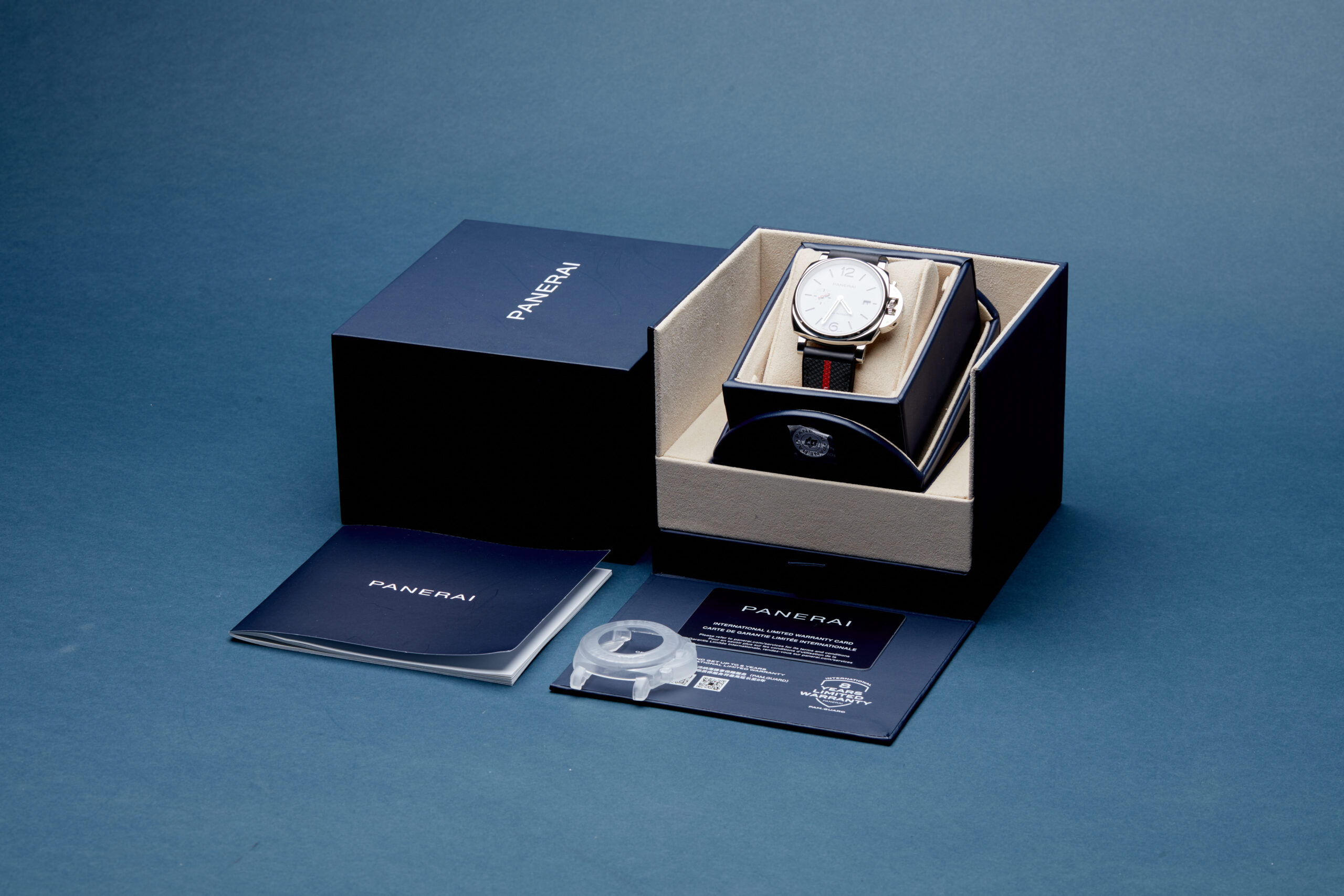 The watch is supplied with its original Panerai box, manual booklet, case cover, travel case and warranty card dated Q3 2024.