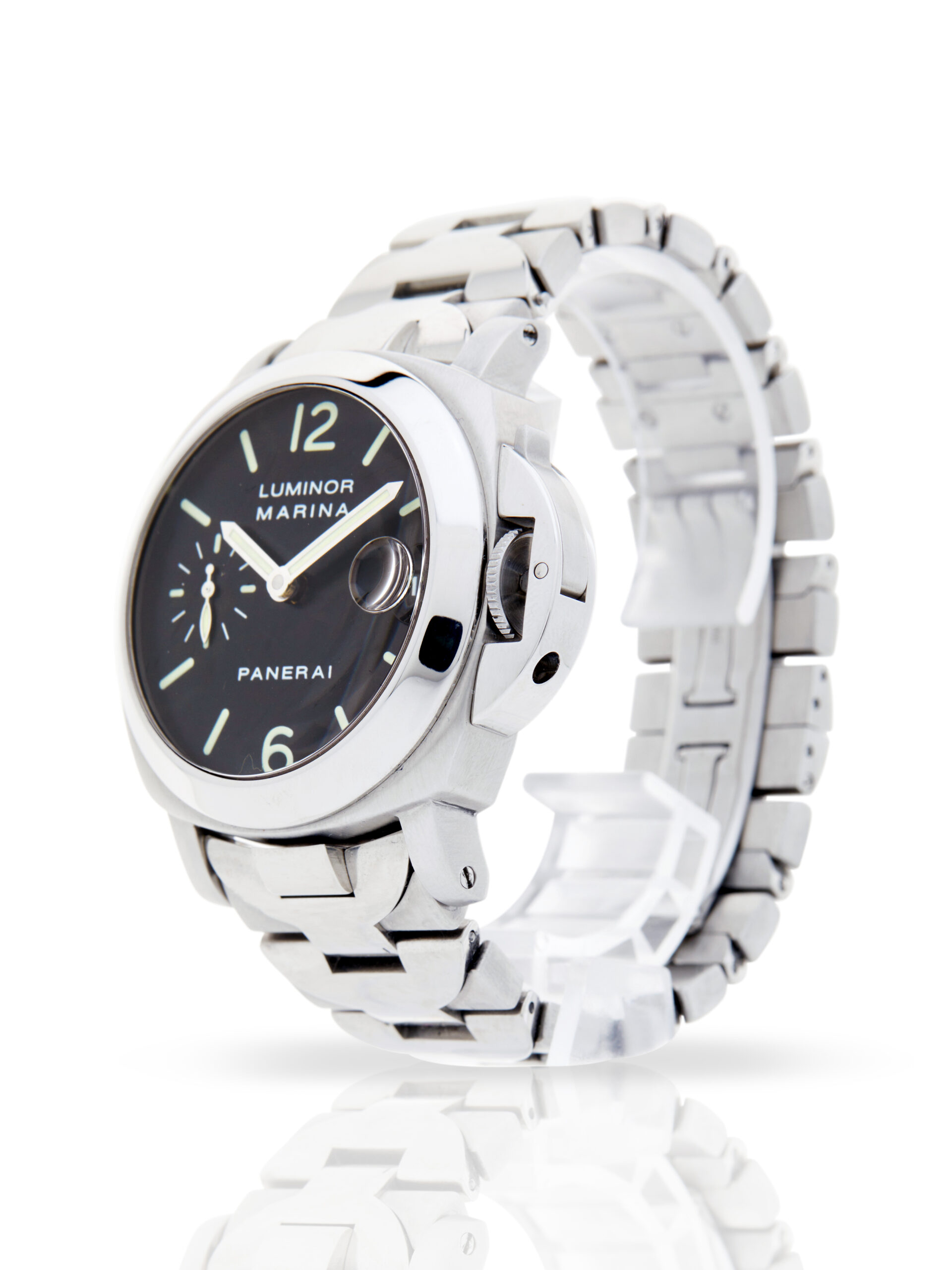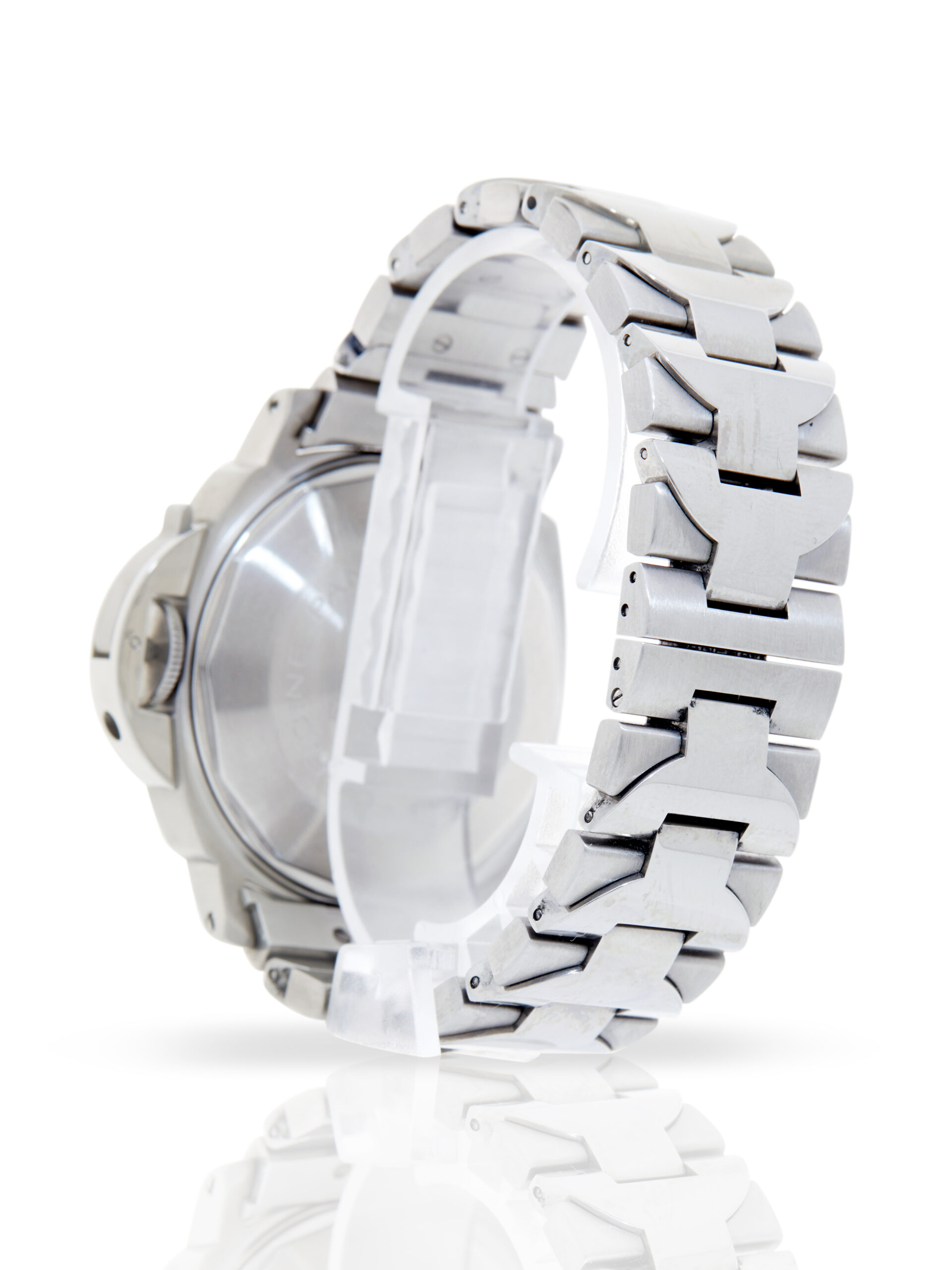 Presented in fantastic condition is this stunning example of a 2001 Panerai Luminor Marina PAM00048. The watch features a 40mm stainless steel case, black dial with luminescent hour markers, smooth stainless steel bezel and is coupled to a stainless steel bracelet with a double folding clasp. Having been professionally tested for condition and accuracy, it’s deemed to be running very well and is showing only very minor signs of wear.