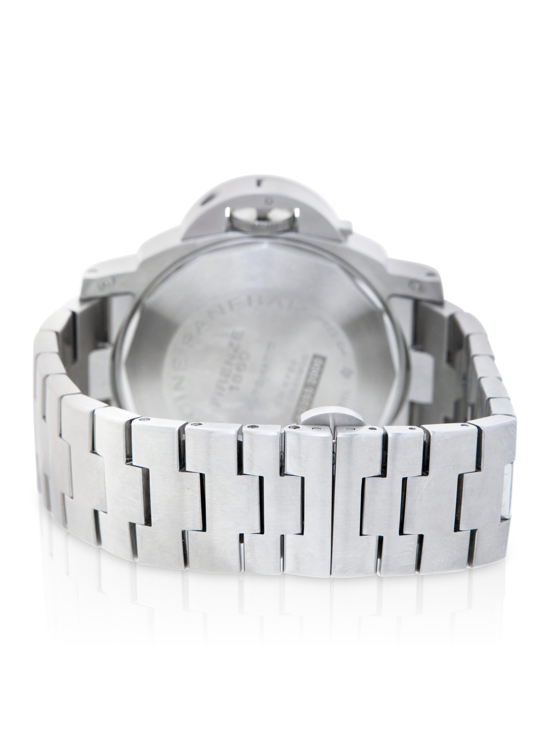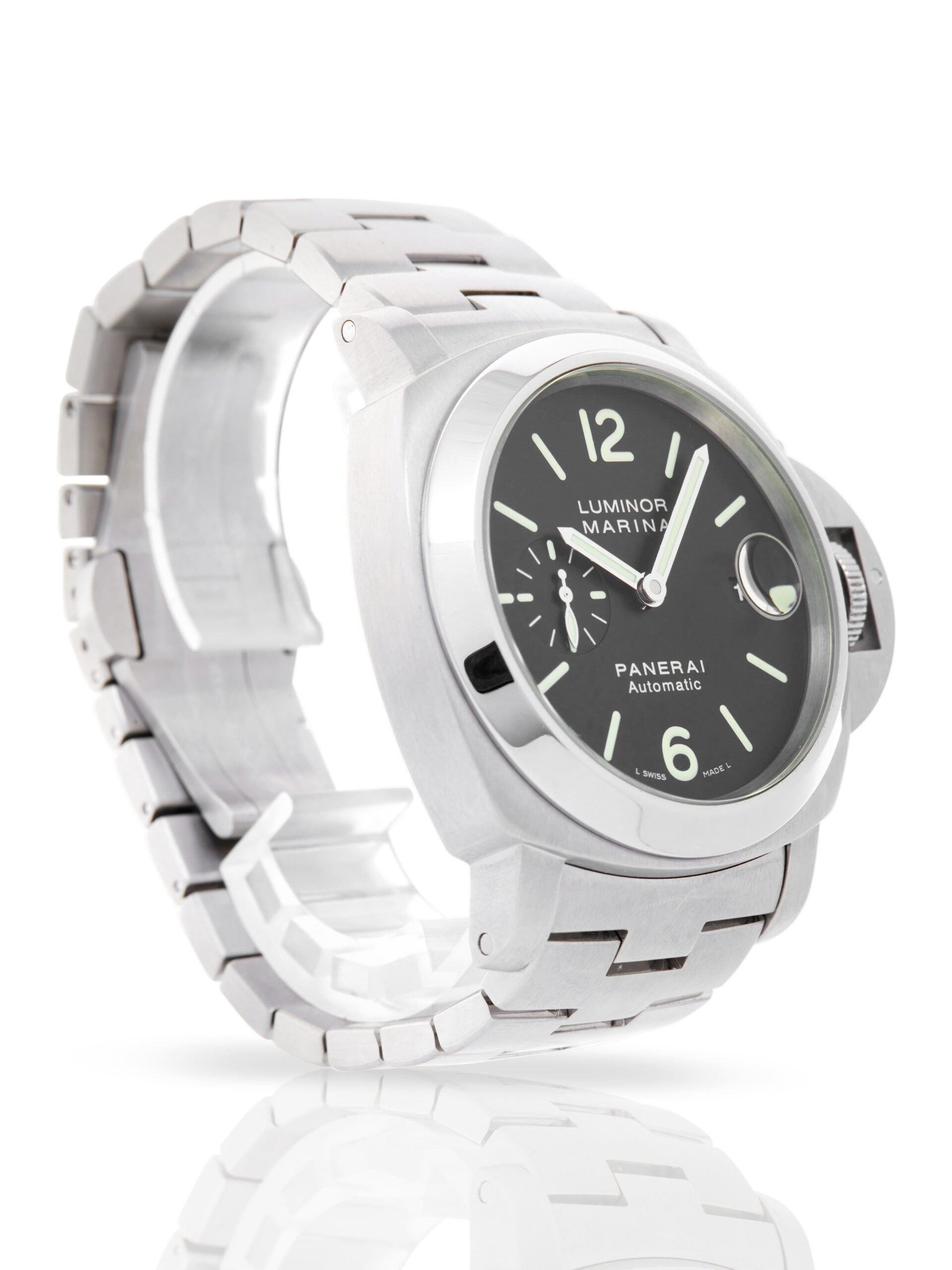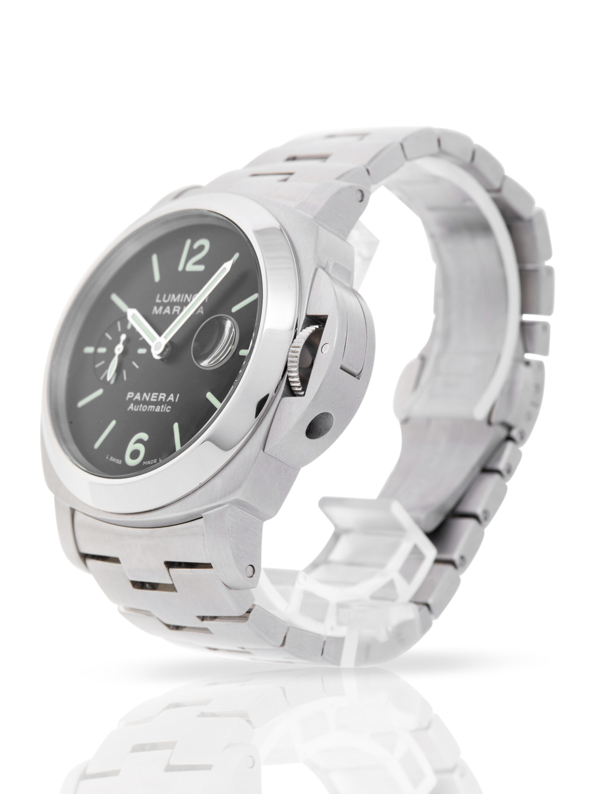 Presented in fantastic condition is this outstanding example of a 2009 Panerai Luminor Marina PAM00299. The watch features a 44mm stainless steel case, black dial with luminescent hour markers, small seconds, date display, polished stainless steel bezel and is coupled to a stainless steel bracelet with a double folding clasp.