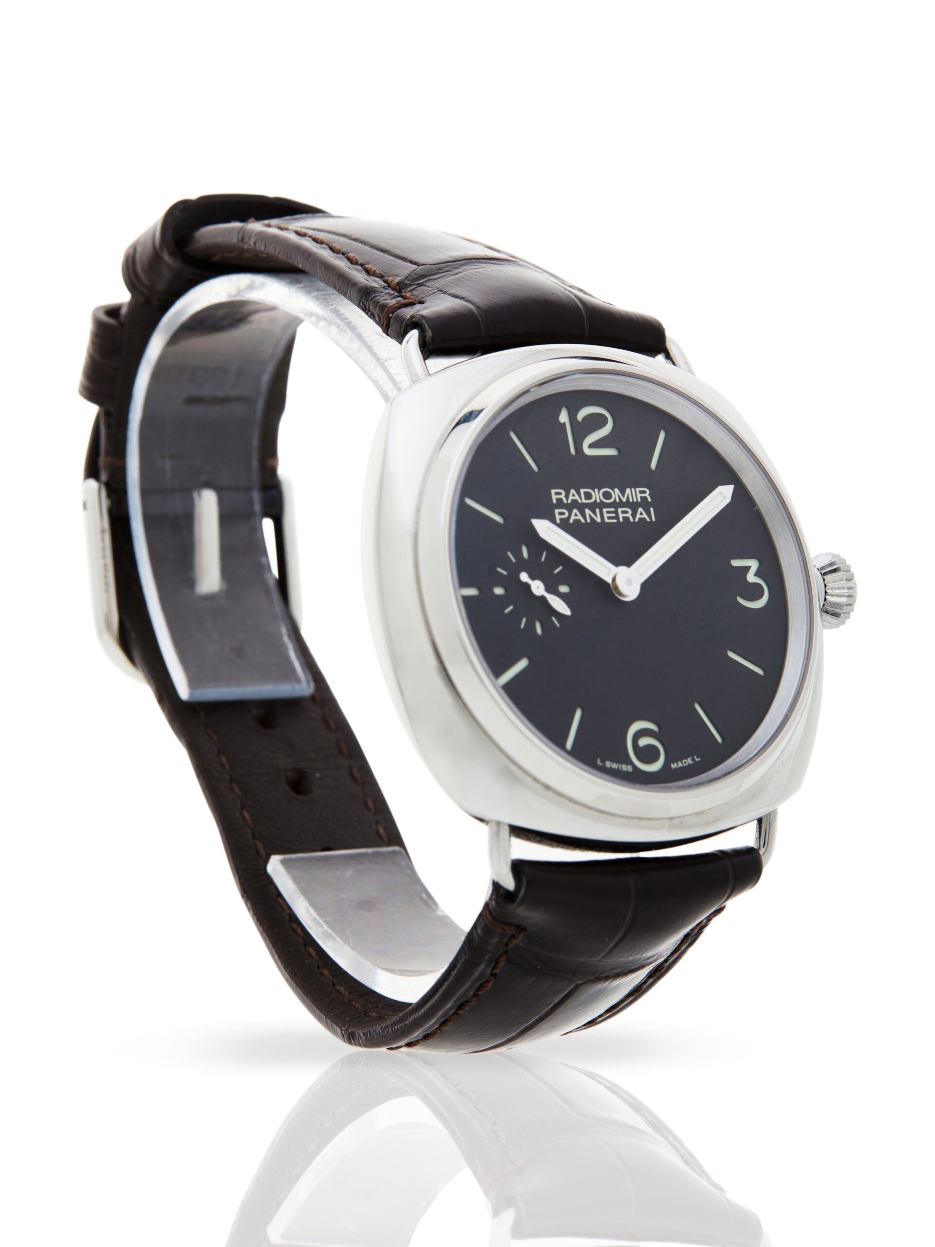 Presented in excellent condition is this stunning example of a Panerai Radiomir PAM00337. The watch features a 42mm stainless steel case, black dial with luminescent hour markers, smooth stainless steel bezel and is coupled to a brown alligator strap with a pin buckle. Having been professionally tested for condition and accuracy, it’s deemed to be running very well and is showing barely any signs of wear.