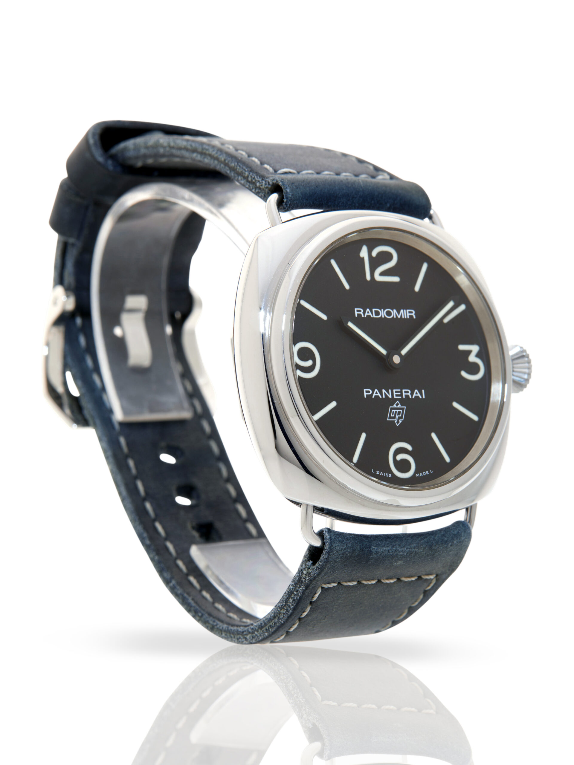 Presented in fantastic condition is this great example of a 2021 Panerai Radiomir PAM00753. The watch features a 45mm stainless steel case, black dial with over-sized luminescent hour markers, smooth stainless steel bezel and is coupled to a blue leather strap with a pin buckle. Having been professionally tested for condition and accuracy, it’s deemed to be running very well and is showing only minor signs of wear.
