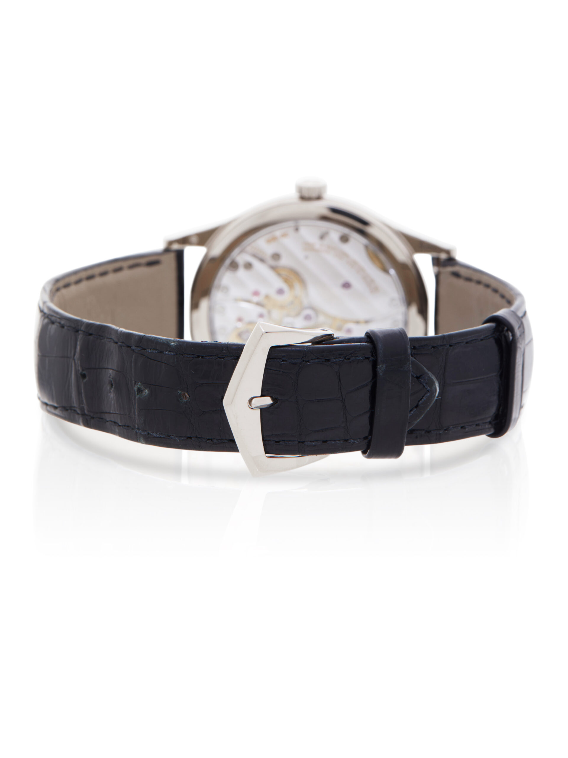 Presented in pristine condition is this elegant example of a 2025 Patek Philippe Calatrava 6119G-001. The watch features a 39mm 18K white gold case, charcoal grey baton dial, guilloched hobnail pattern on an 18K white gold bezel and is coupled to a black alligator strap with an 18K white gold pin buckle. Having been professionally tested for condition and accuracy, it’s deemed to be running perfectly, ready for its new, lucky owner.