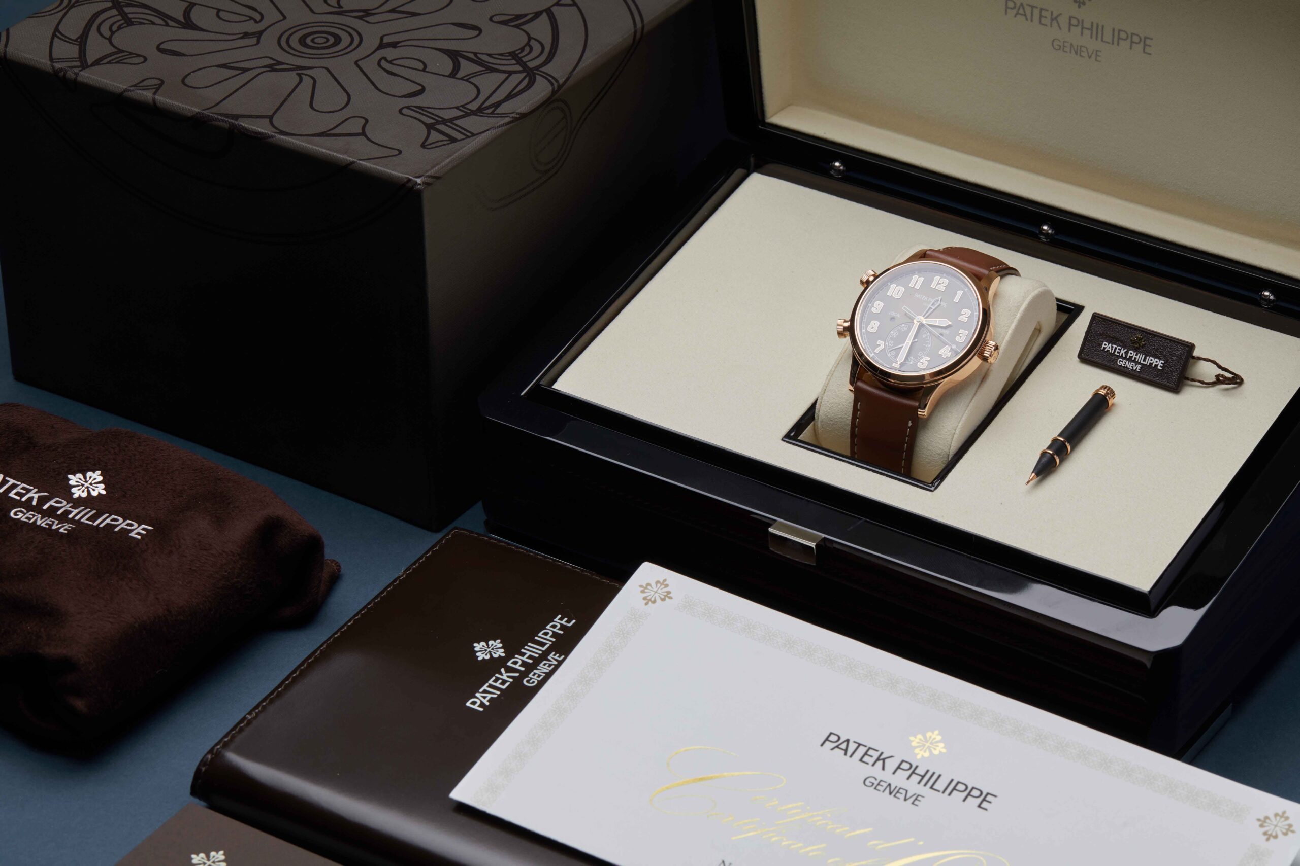 The watch is supplied with its original Patek Philippe box, brown wallet, box cover, complication stylus and warranty certificate.