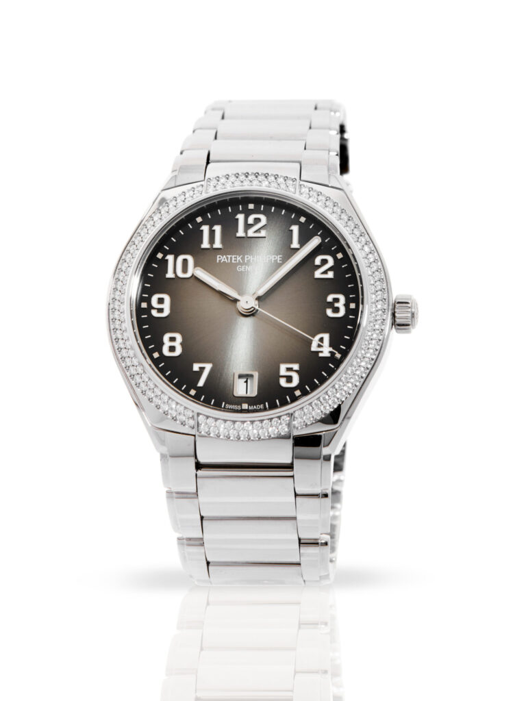 Presented in unworn condition is this lovely example of a 2026 Patek Philippe Twenty 4 7300/1200A-010. The watch features a 36mm stainless steel case, grey dial with white luminescent Arabic numerals, diamond-set bezel and is coupled to a stainless steel bracelet. Having been professionally tested for condition and accuracy, it’s deemed to be running perfectly, ready for its new, lucky owner.