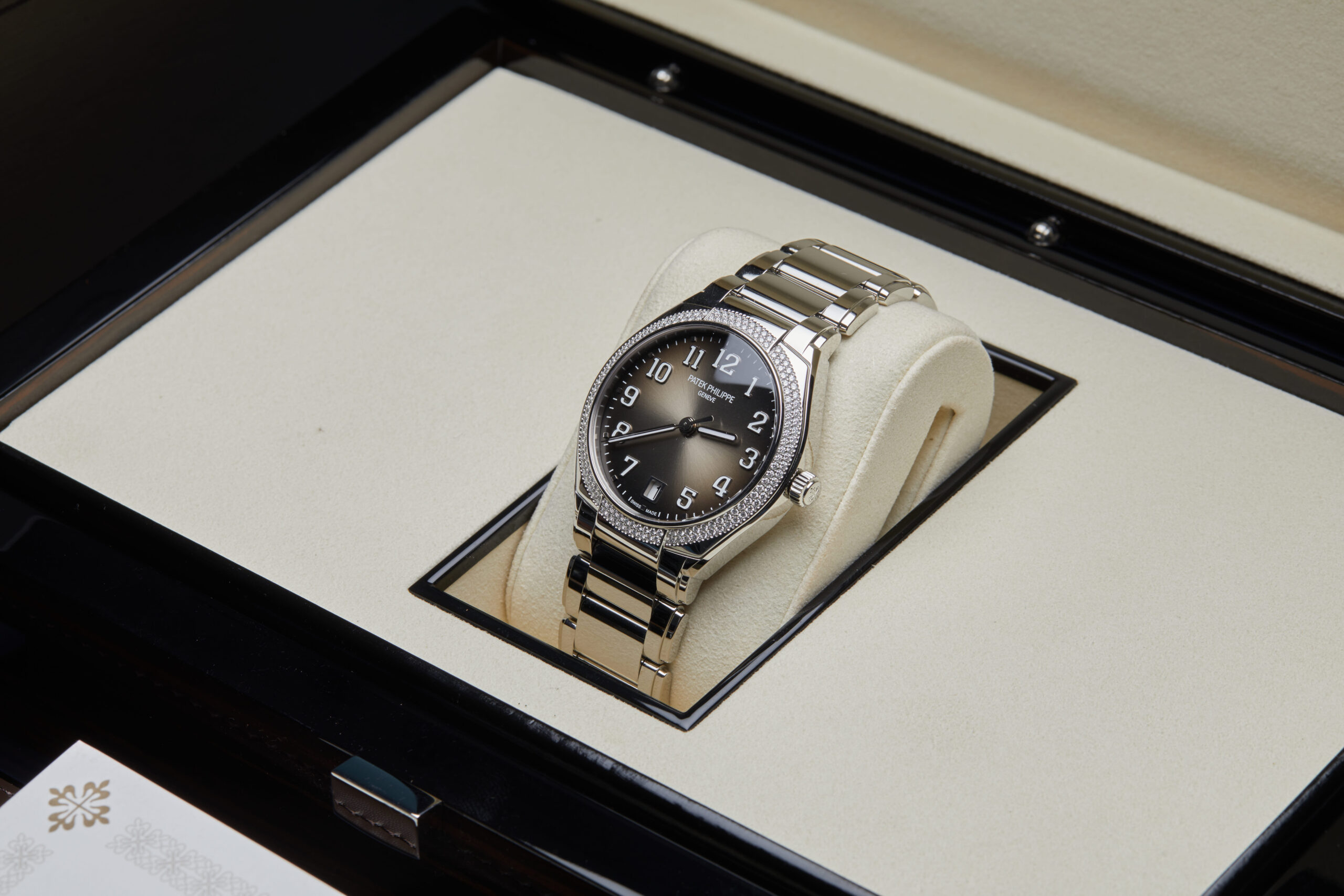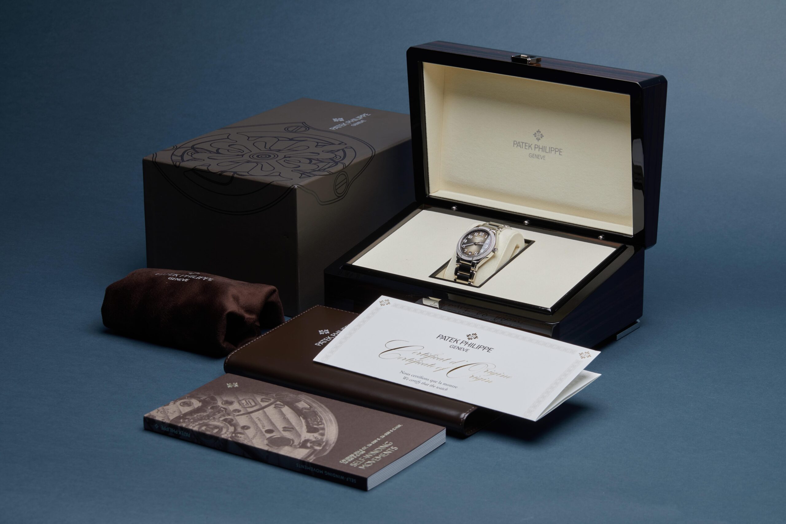 The watch is supplied with its original Patek Philippe box, brown wallet, box cover, manuals and warranty certificate.