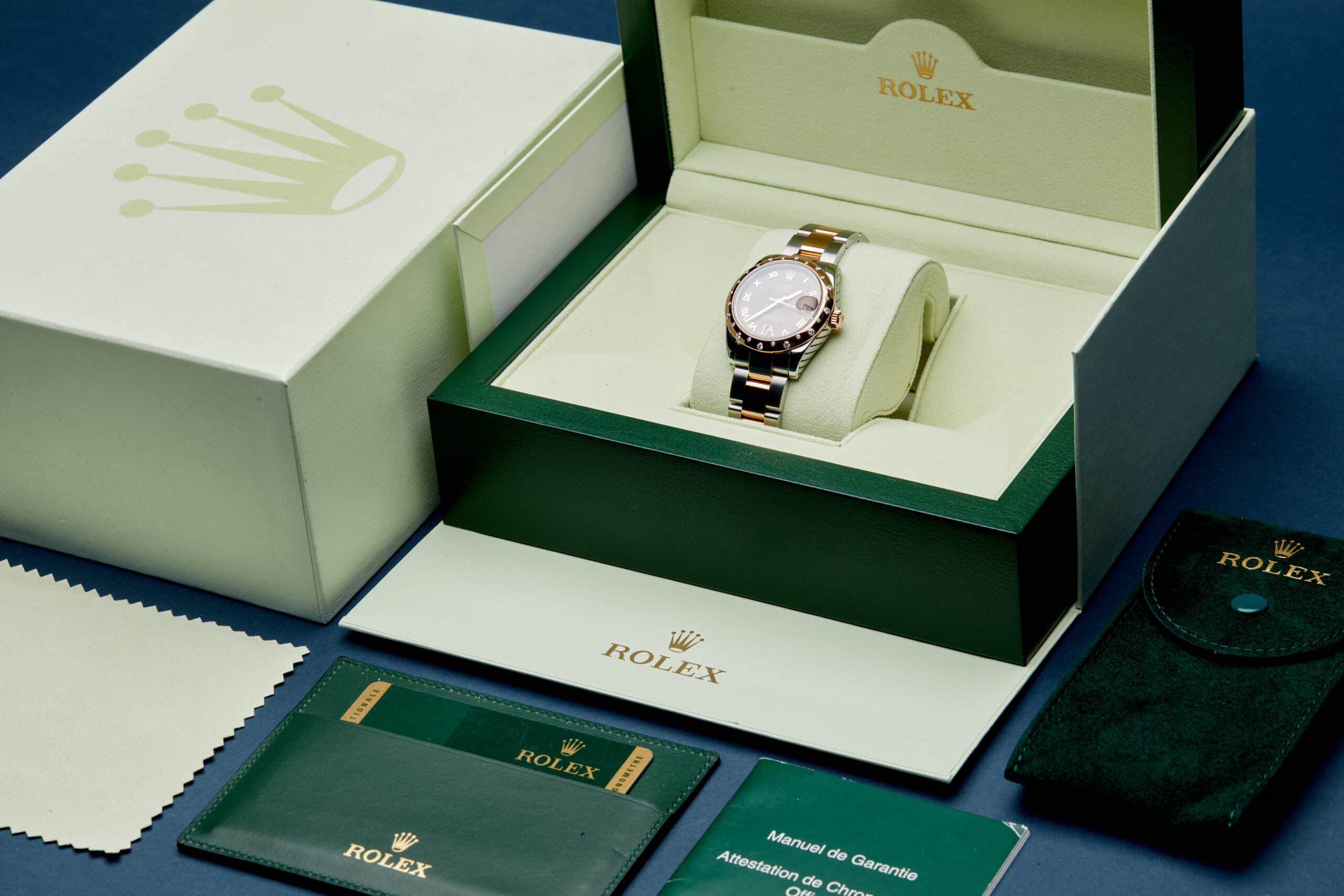 The watch is supplied with its original Rolex box, polishing cloth, green leather wallet, service manual, travel pouch and warranty card dated Q2 2011 (UK supplied).