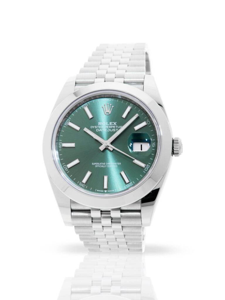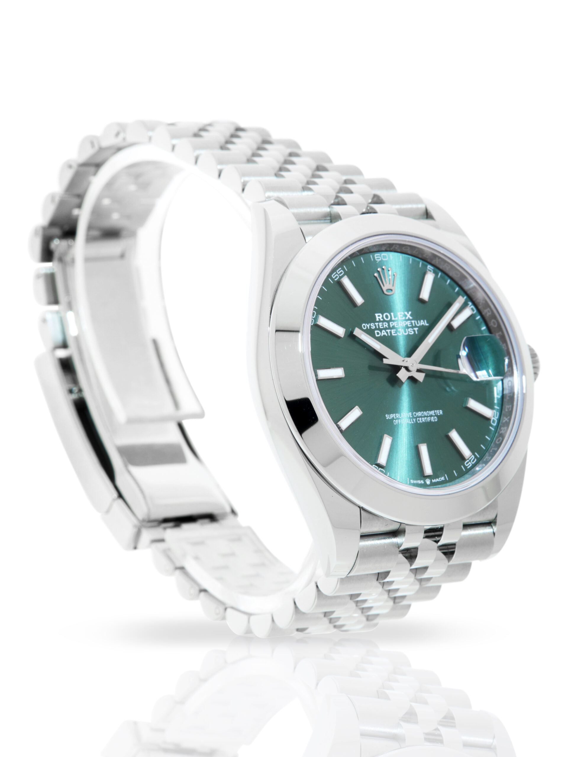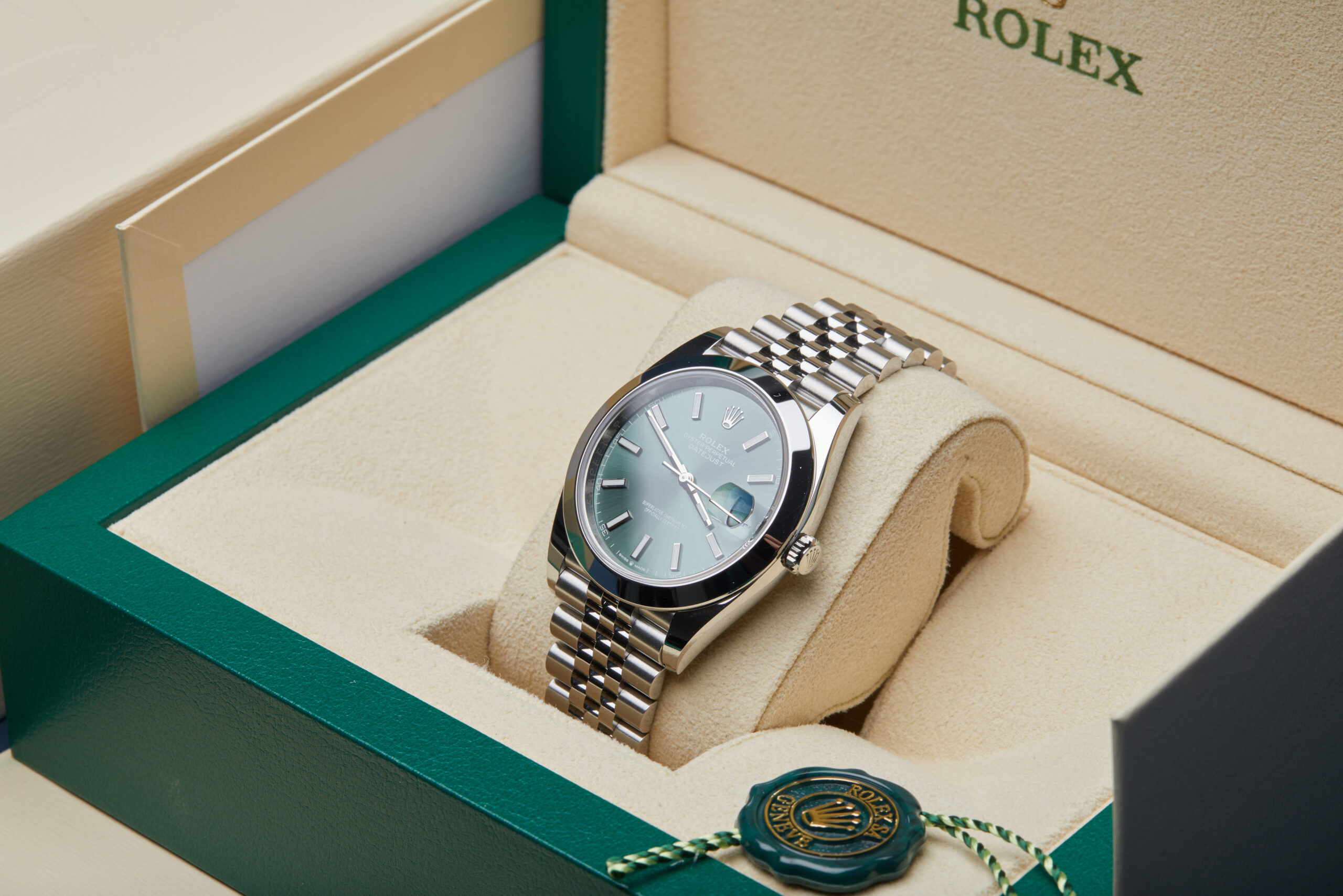 Presented in excellent condition is this stunning example of a 2023 Rolex Datejust 41 126300. The watch features a 41mm stainless steel case, mint green dial with luminescent hour markers, smooth stainless steel bezel and is coupled to a stainless steel Jubilee bracelet. Having been professionally tested for condition and accuracy, it’s deemed to be running perfectly and is showing barely any signs of wear.