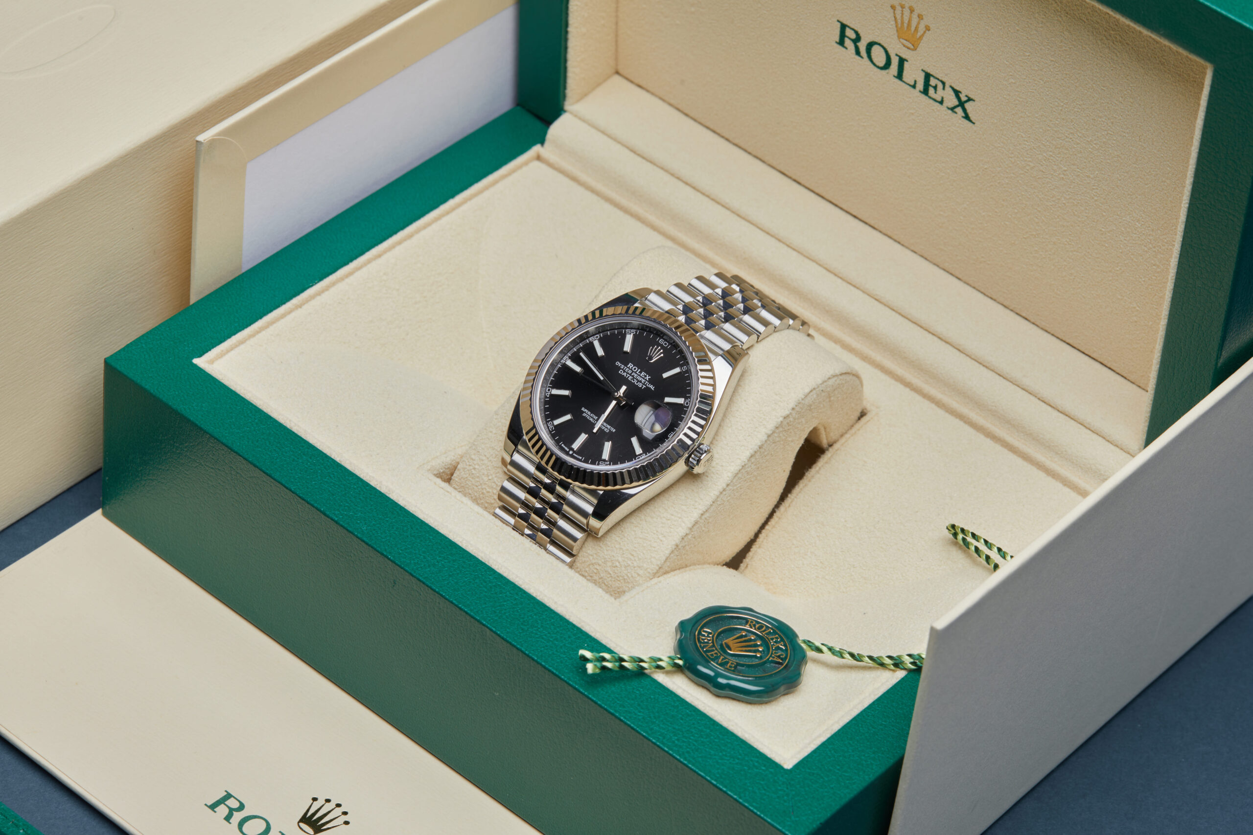 Presented in excellent condition is this stunning example of a 2022 Rolex Datejust 41 126334. The watch features a 41mm stainless steel case, black dial with luminescent hour markers, 18K white gold fluted bezel and is coupled to a stainless steel Jubilee bracelet. Having been professionally tested for condition and accuracy, it’s deemed to be running perfectly and is showing barely any signs of wear.
