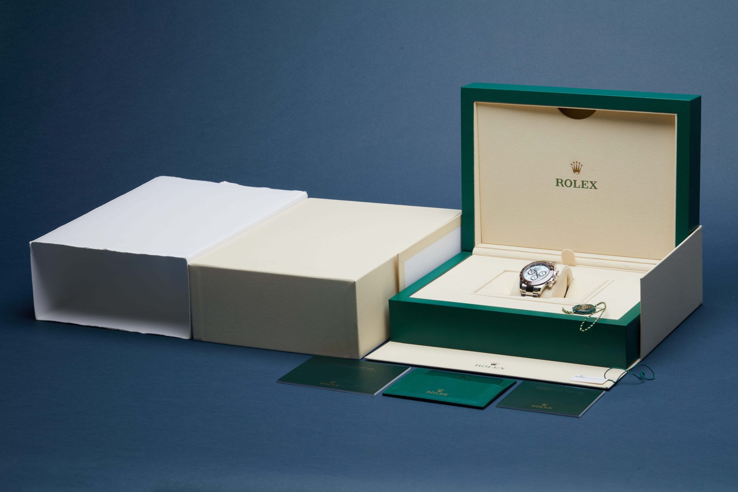 The watch is supplied with its original Rolex box, green leather wallet, both swing tags, manuals and warranty card.