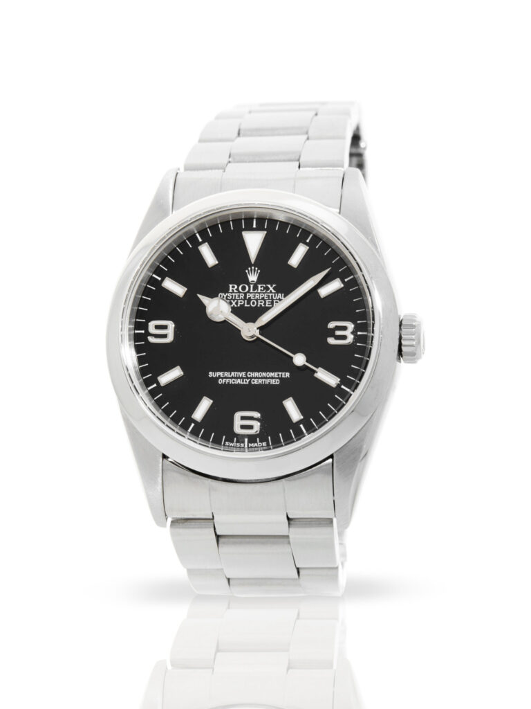 Presented in fantastic condition is this great example of a 2000 Rolex Explorer 36 14270. The watch features a 36mm stainless steel case, smooth stainless steel bezel, black dial with luminescent hour markers, quarter Arabic numerals and is coupled to a stainless steel Oyster bracelet. Having been professionally tested for condition and accuracy, it’s deemed to be running very well and is showing only minor signs of wear.