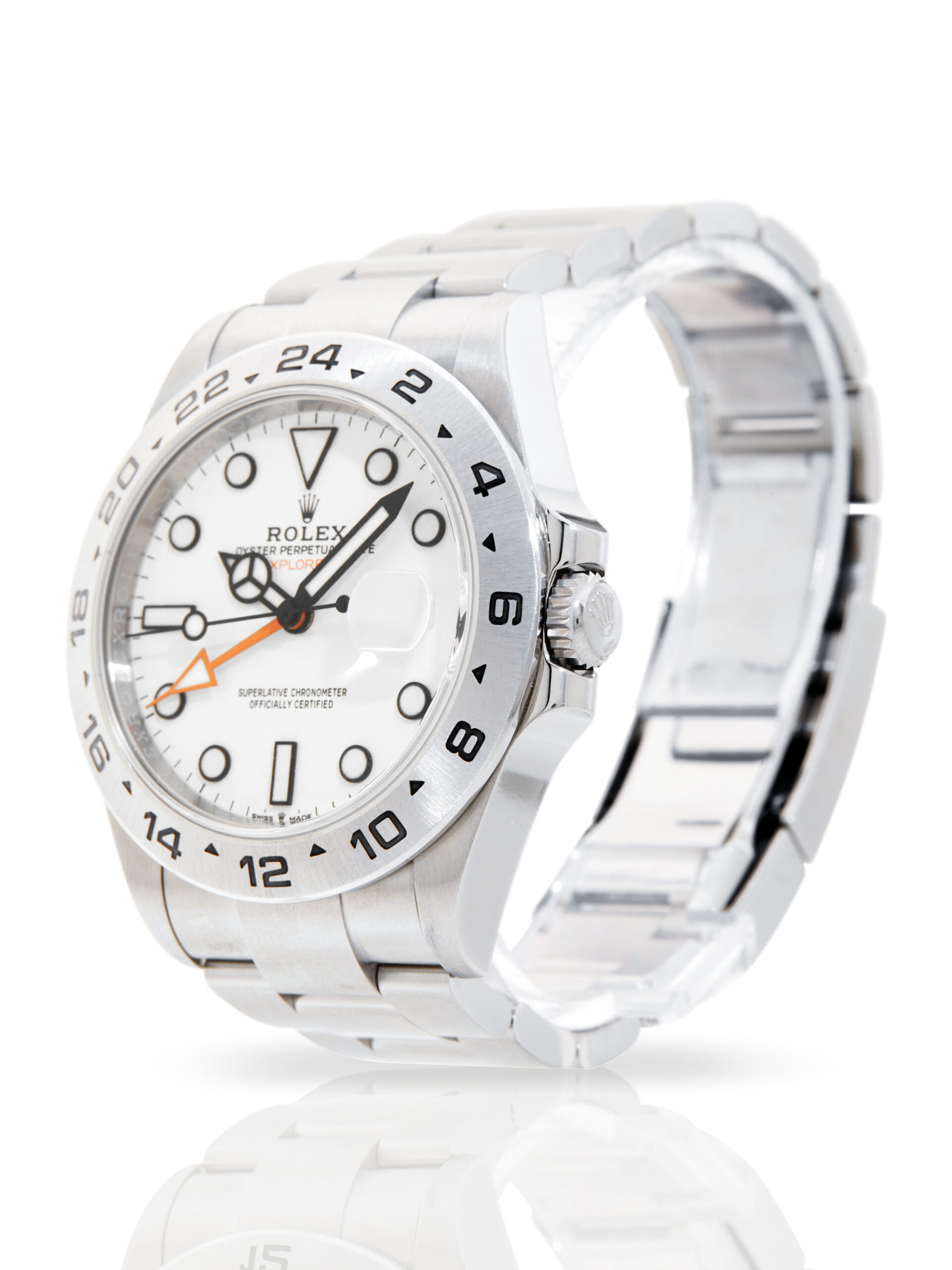 Presented in excellent condition is this outstanding example of a 2023 Rolex Explorer II 226570. The watch features a 42mm stainless steel case, white dial with luminescent hour markers, brushed stainless steel bezel with 24-hour GMT scale and is coupled to a stainless steel Oyster bracelet. Having been professionally tested for condition and accuracy, it’s deemed to be running perfectly, ready for its new, lucky owner.