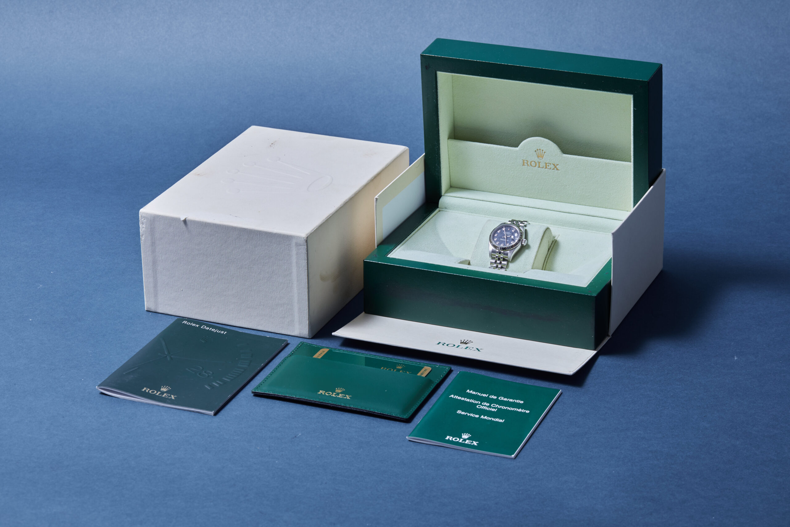 The watch is supplied with its original Rolex box, manuals, green leather wallet and warranty card dated Q4 2009 (UK supplied).