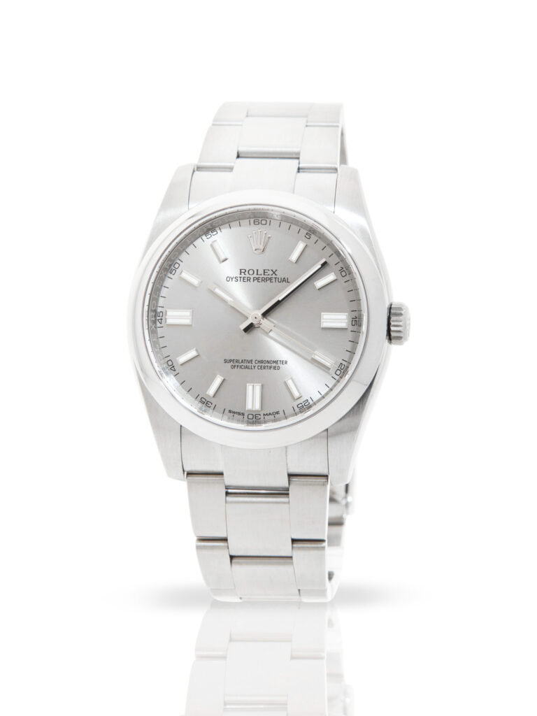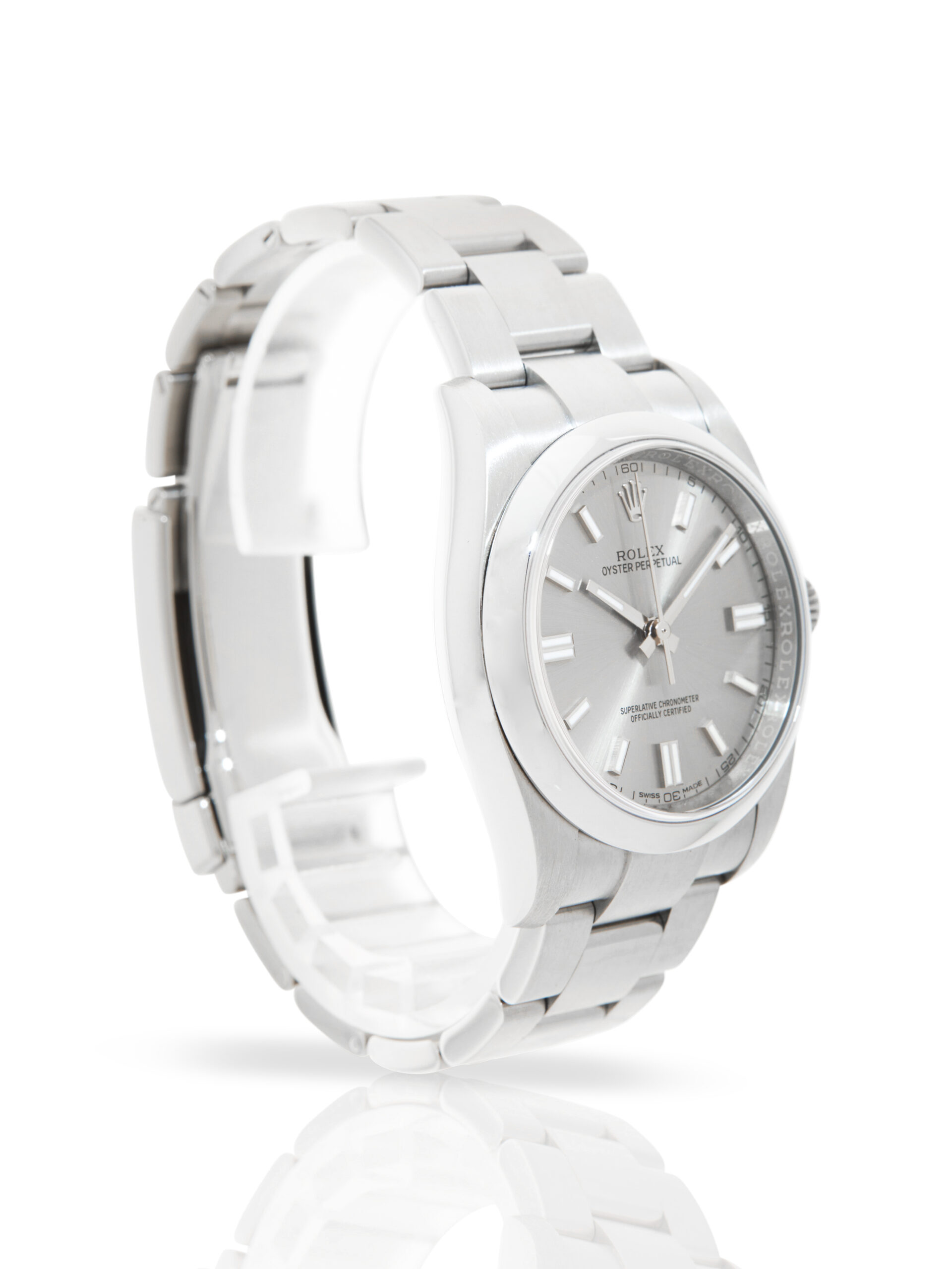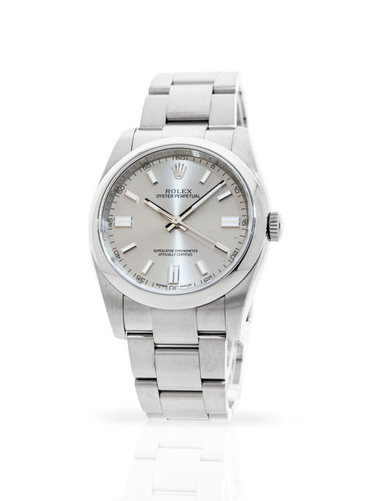 Presented in excellent condition is this stunning example of a 2017 Rolex Oyster Perpetual 36 116000. The watch features a 36mm stainless steel case, silver dial with luminescent hour markers, smooth stainless steel bezel and is coupled to a stainless steel Oyster bracelet. Having been professionally tested for condition and accuracy, it’s deemed to be running very well and is showing only limited signs of wear.