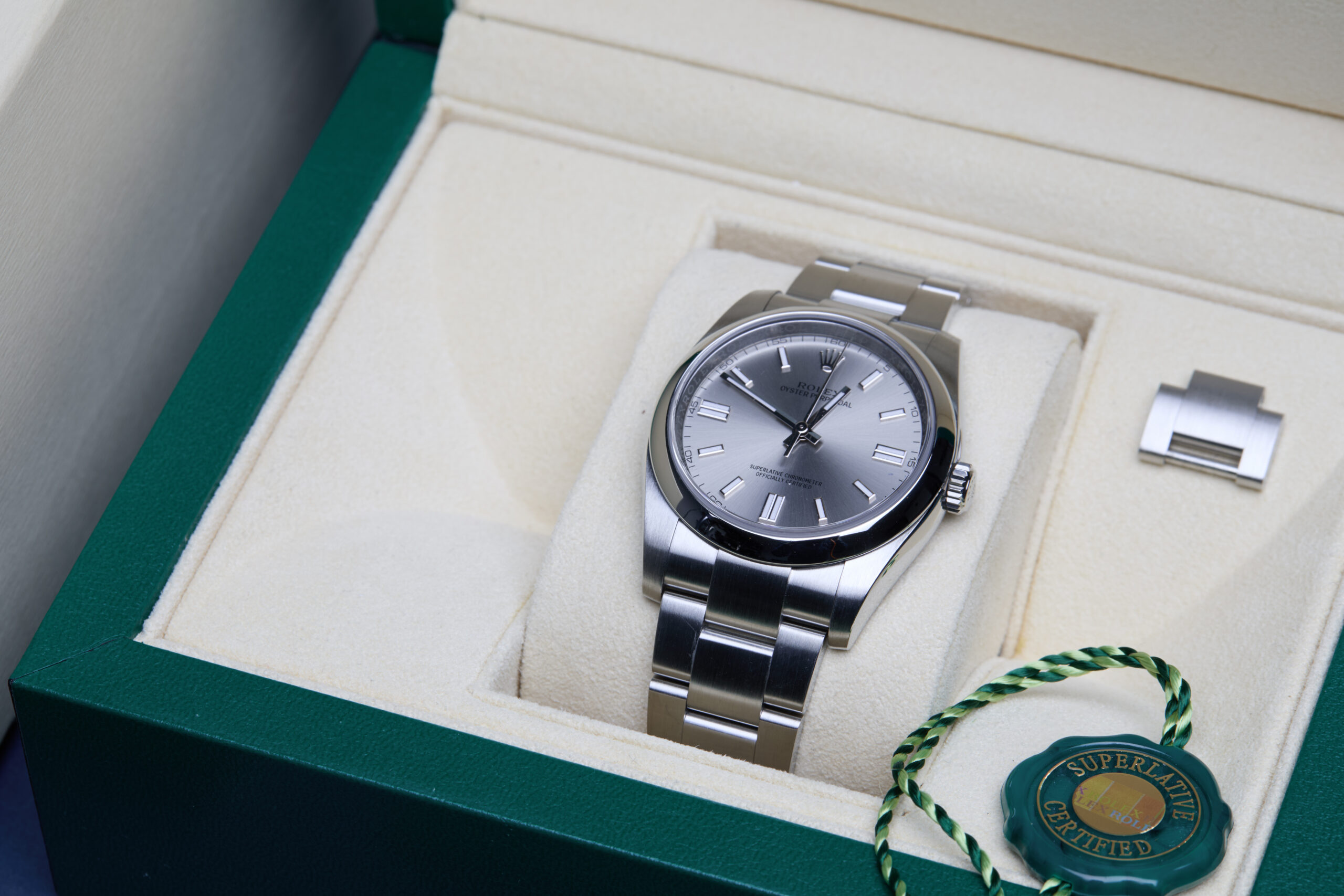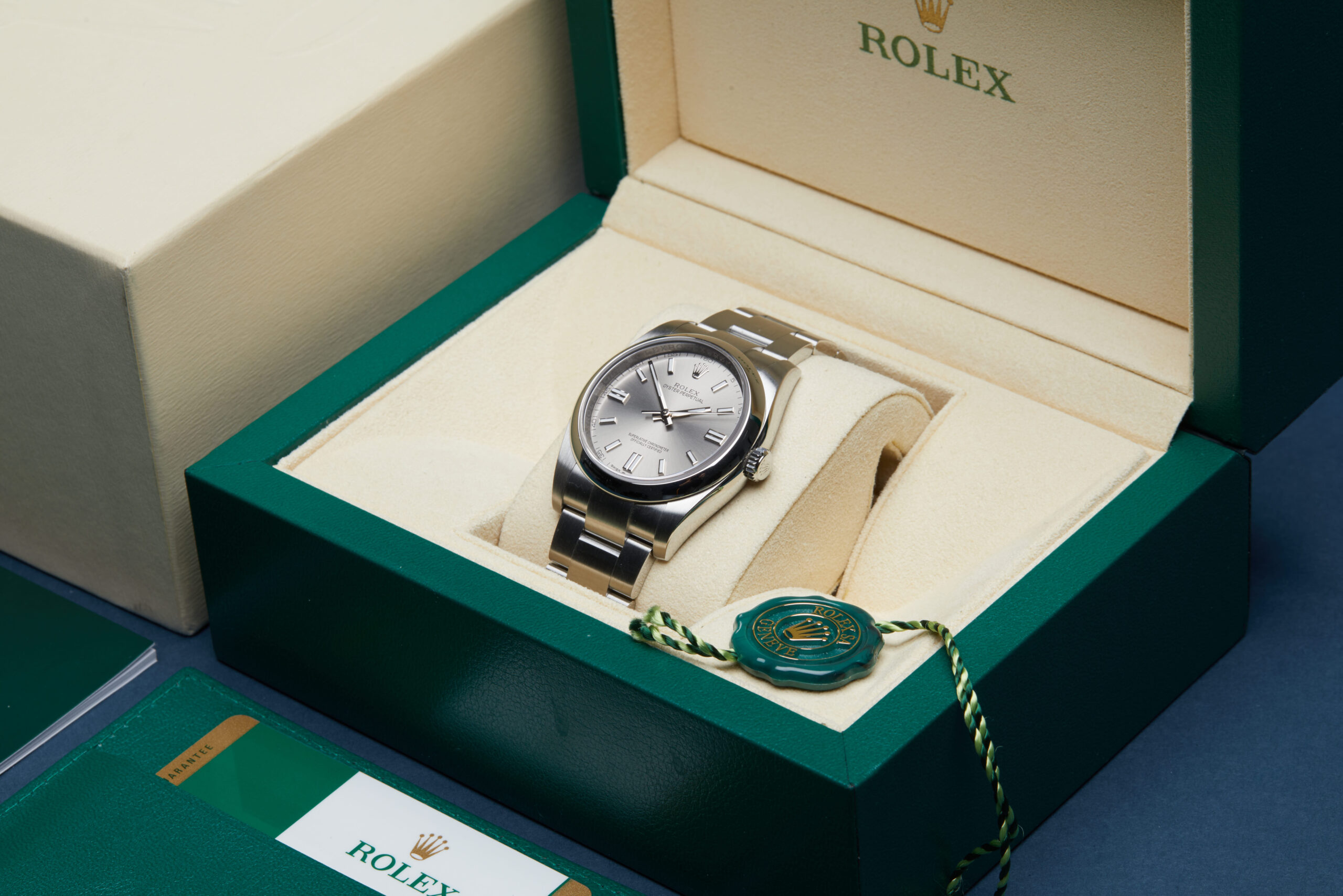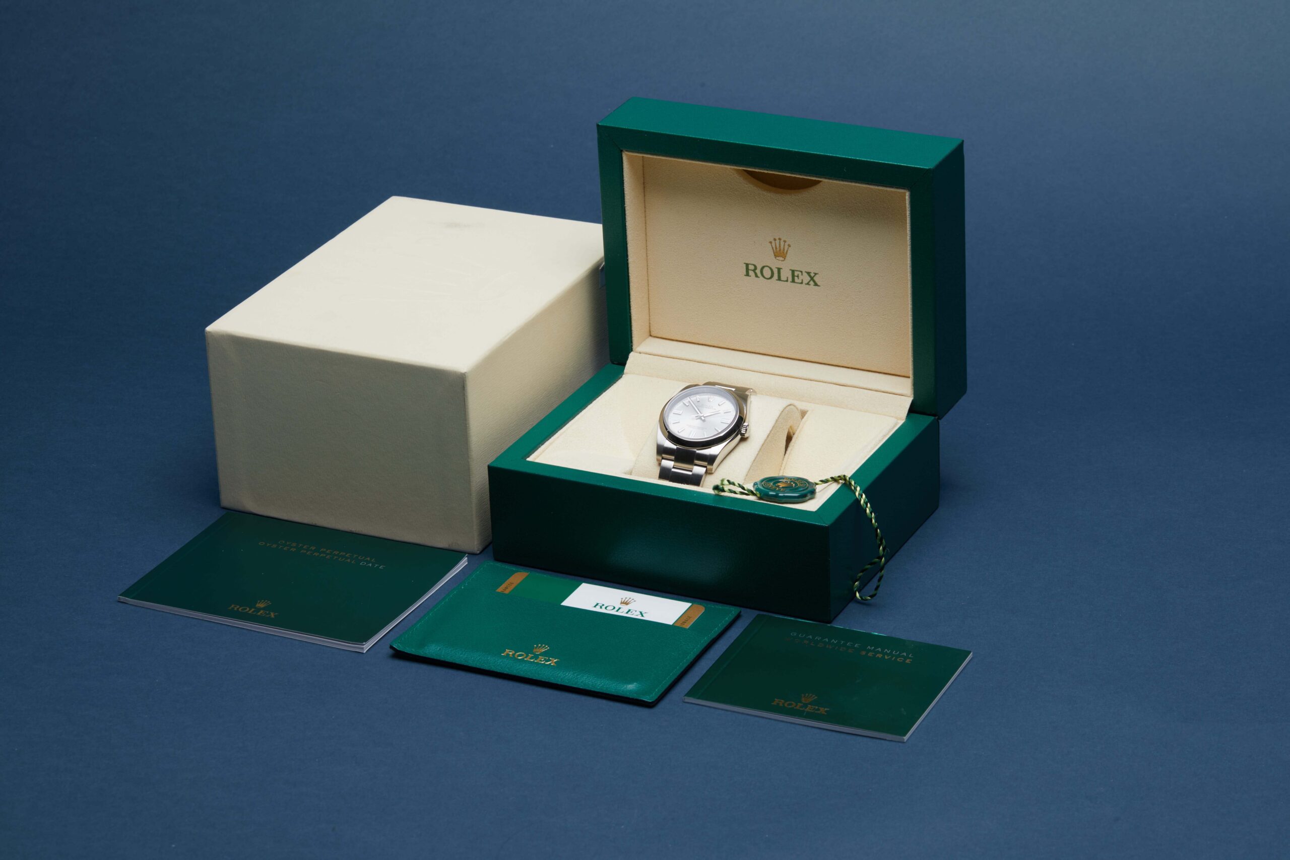 The watch is supplied with its original Rolex box, green leather wallet, manual, green swing tag and warranty card dated Q1 2017 (UK supplied).
