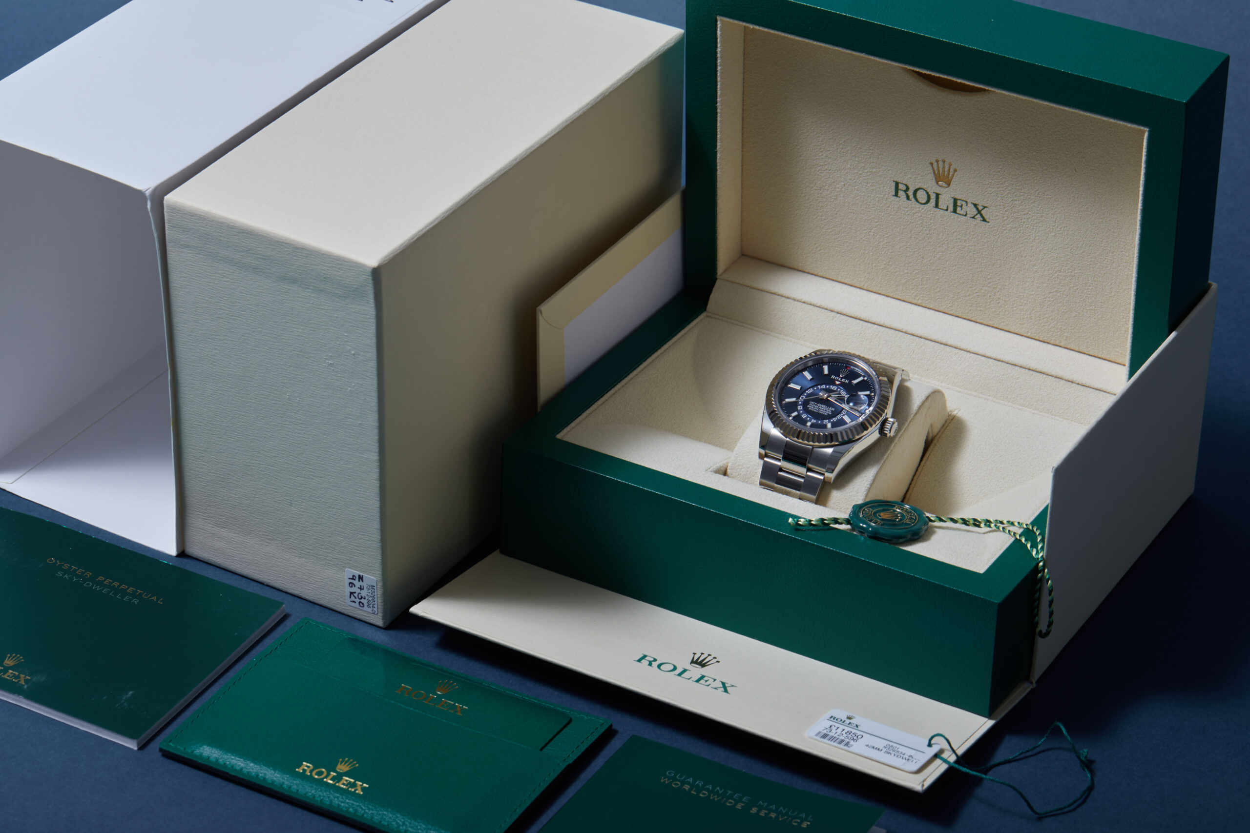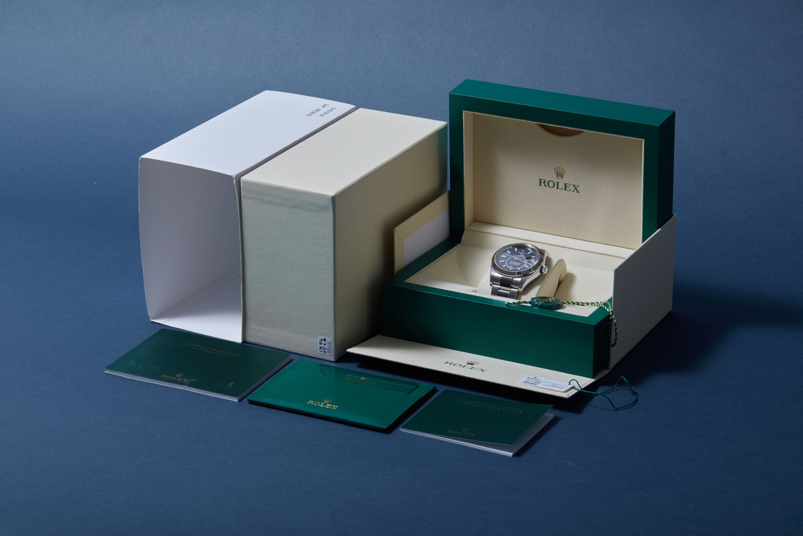The watch is supplied with its original Rolex box, green leather wallet, manuals, 2x swing tags and warranty card dated Q4 2021.