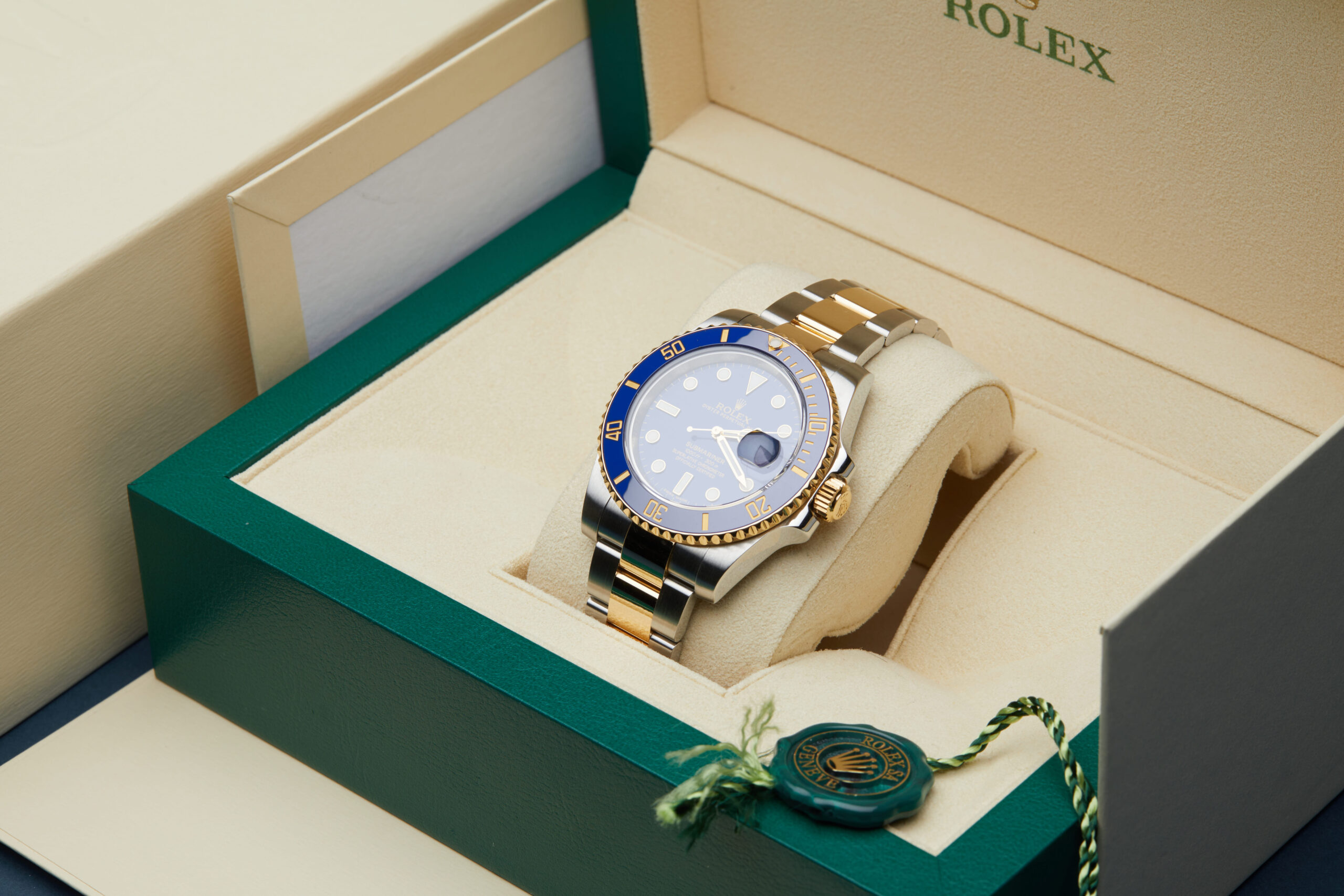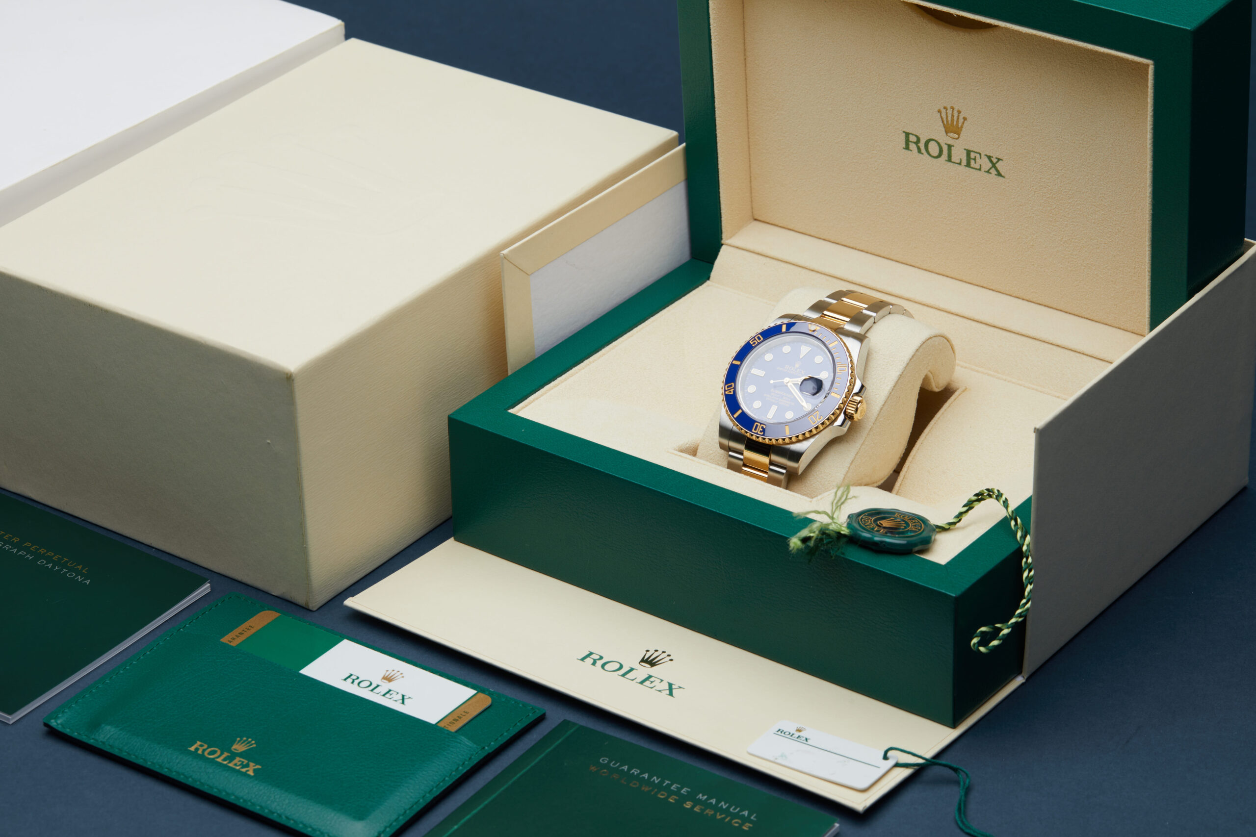 The watch is supplied with its original Rolex box, green leather wallet, 2x swing tags, manual booklet and warranty card dated Q2 2017 (UK supplied).