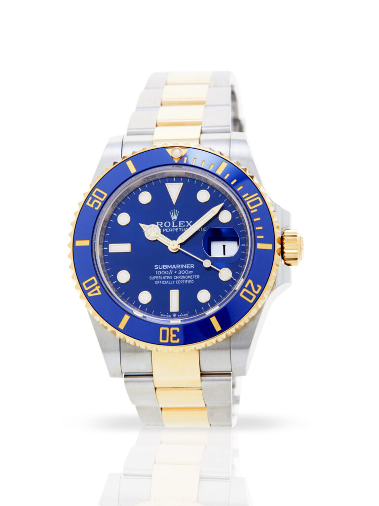 Presented in excellent condition is outstanding example of a 2024 Rolex Submariner Date 126613LB. The watch features a 41mm stainless steel case, blue dial with luminescent hour markers, 18K yellow gold bezel with blue ceramic insert and is coupled to a bi-metal Oyster bracelet. Having been professionally tested for condition and accuracy, it’s deemed to be running perfectly and is showing barely any signs of wear.