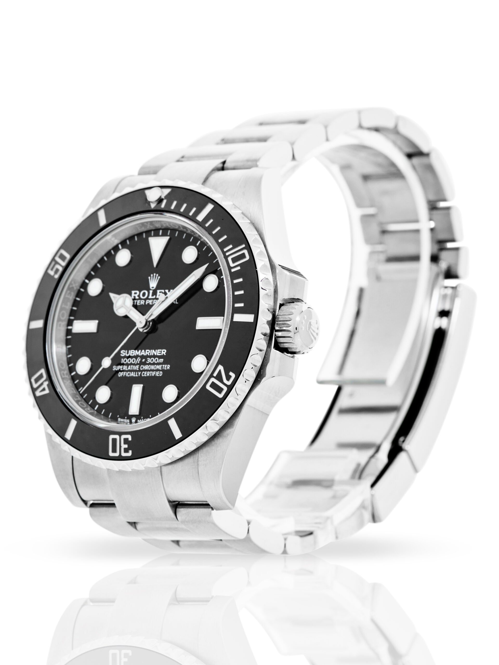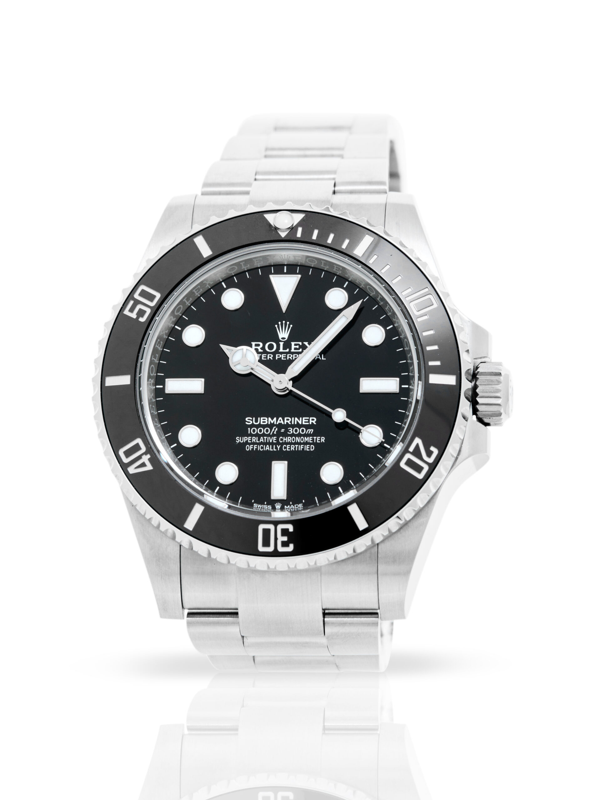 Presented in unworn condition is this superb example of a 2024 Rolex Submariner Non-Date 124060. The watch features a 41mm stainless steel case, black dial with white luminescent hour markers, stainless steel bezel with black ceramic insert and is coupled to a stainless steel Oyster bracelet. Having been professionally tested for condition and accuracy, it’s deemed to be running perfectly, ready for its new, lucky owner.