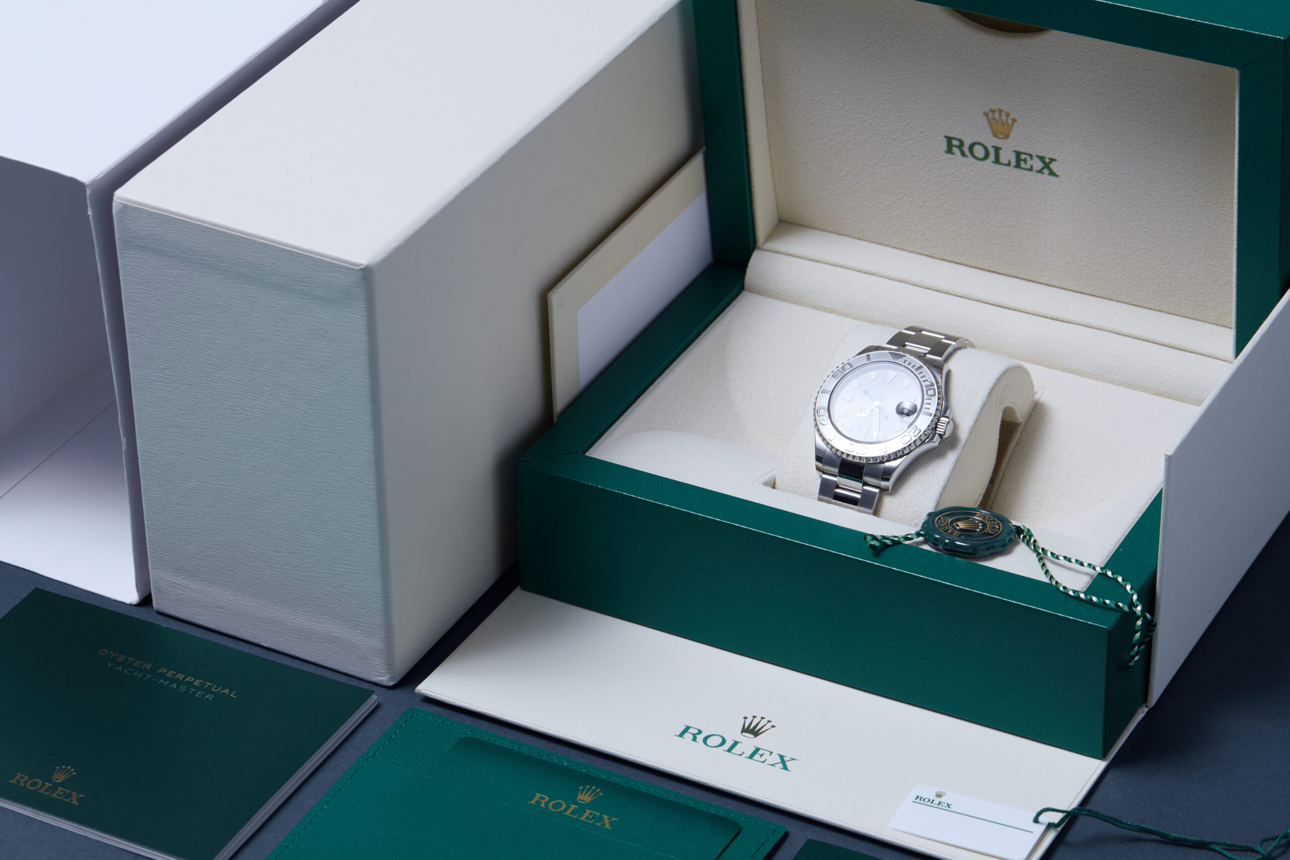 The watch is supplied with its original Rolex box, green leather wallet, 2x swing tags and warranty card dated Q2 2021.