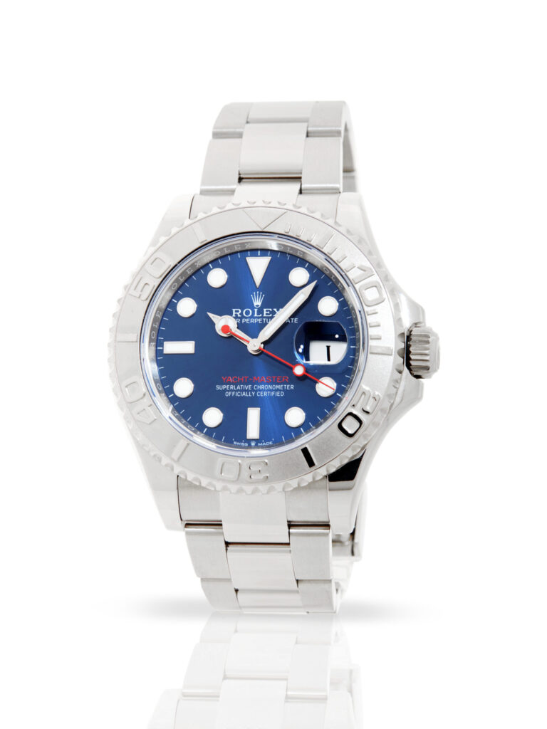 Presented in excellent condition is this stunning example of a 2023 Rolex Yacht-Master 40 126622. The watch features a 40mm stainless steel case, blue dial with luminescent hour markers, platinum bezel and is coupled to a stainless steel Oyster bracelet. Having been professionally tested for condition and accuracy, it’s deemed to be running perfectly and is showing barely any signs of wear.