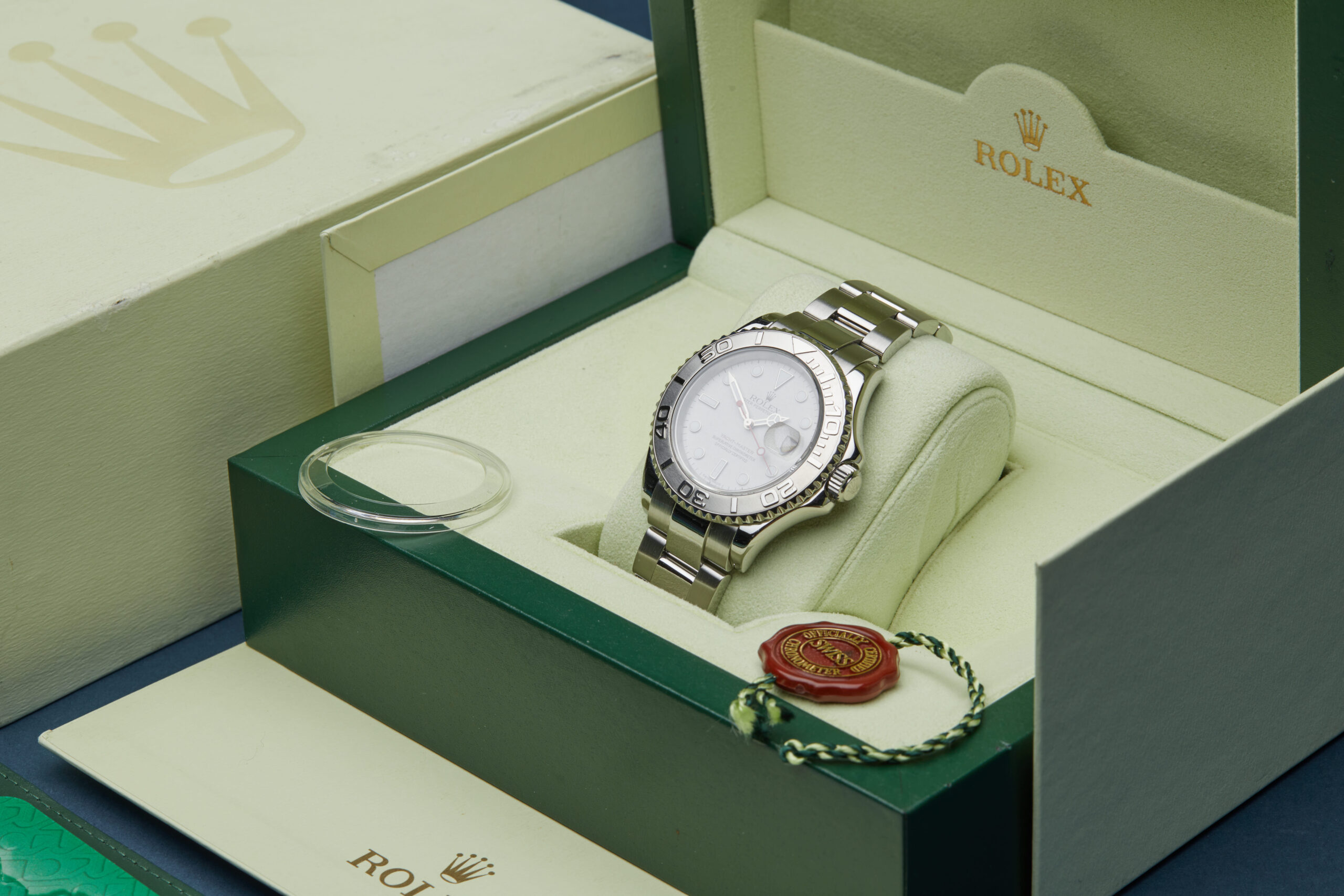 The watch is supplied with its original Rolex box, manuals, green leather wallet, swing tag, bezel protector and warranty certificate dated Q2 2007.