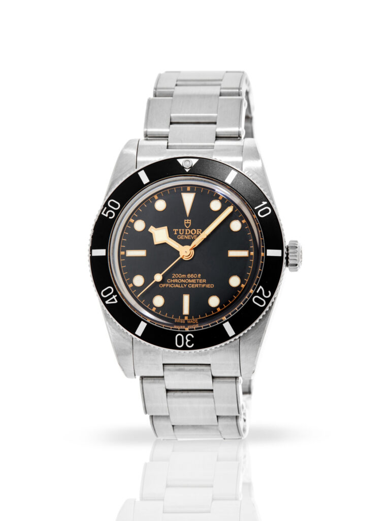 Presented in excellent condition is this stunning example of a 2023 Tudor Black Bay 54 79000N. The watch features a 37mm stainless steel case, black dial with luminescent hour markers, stainless steel bezel with black insert and is coupled to a stainless steel bracelet with a folding clasp. Having been professionally tested for condition and accuracy, it’s deemed to be running perfectly and is showing barely any signs of wear.