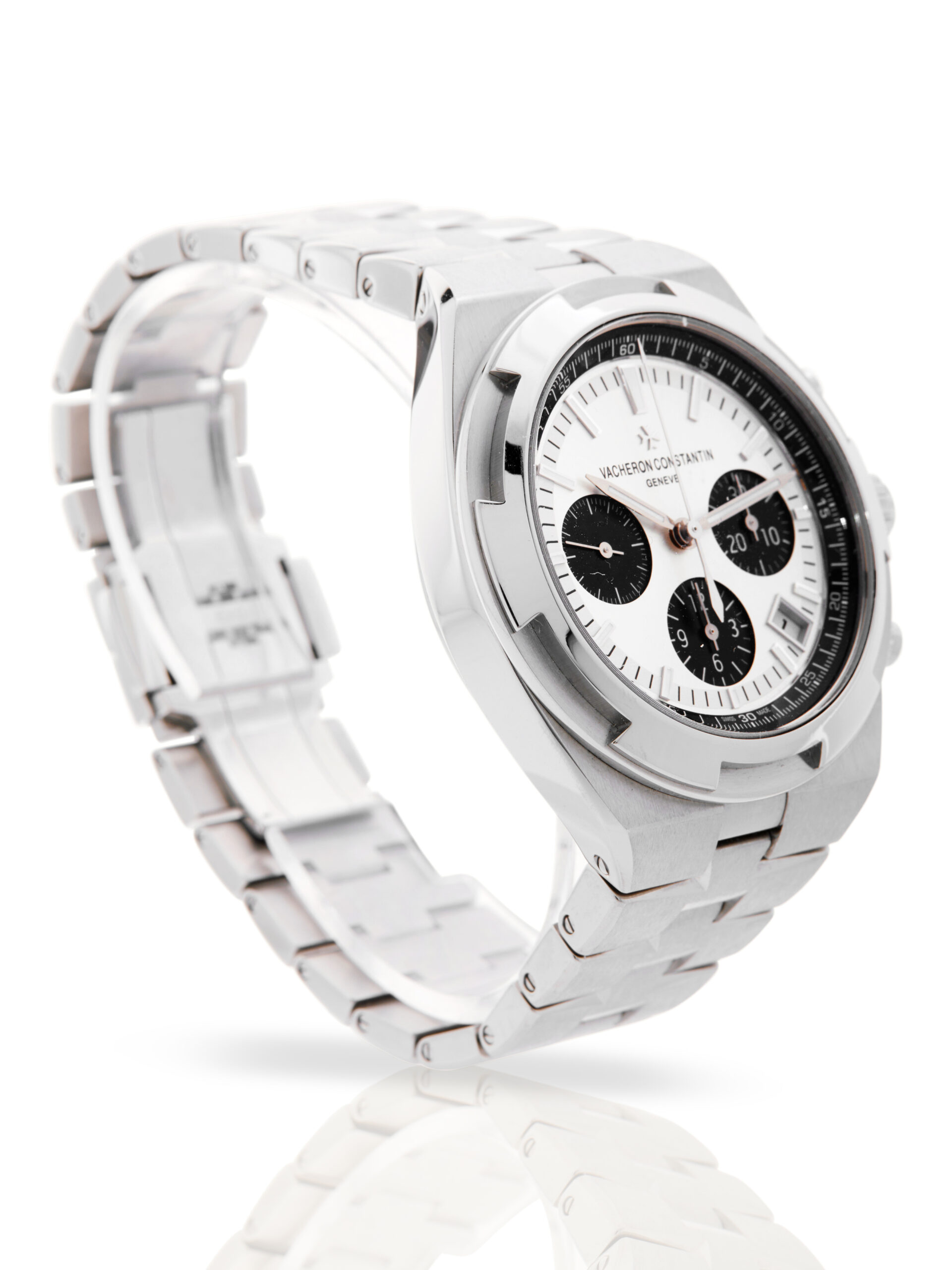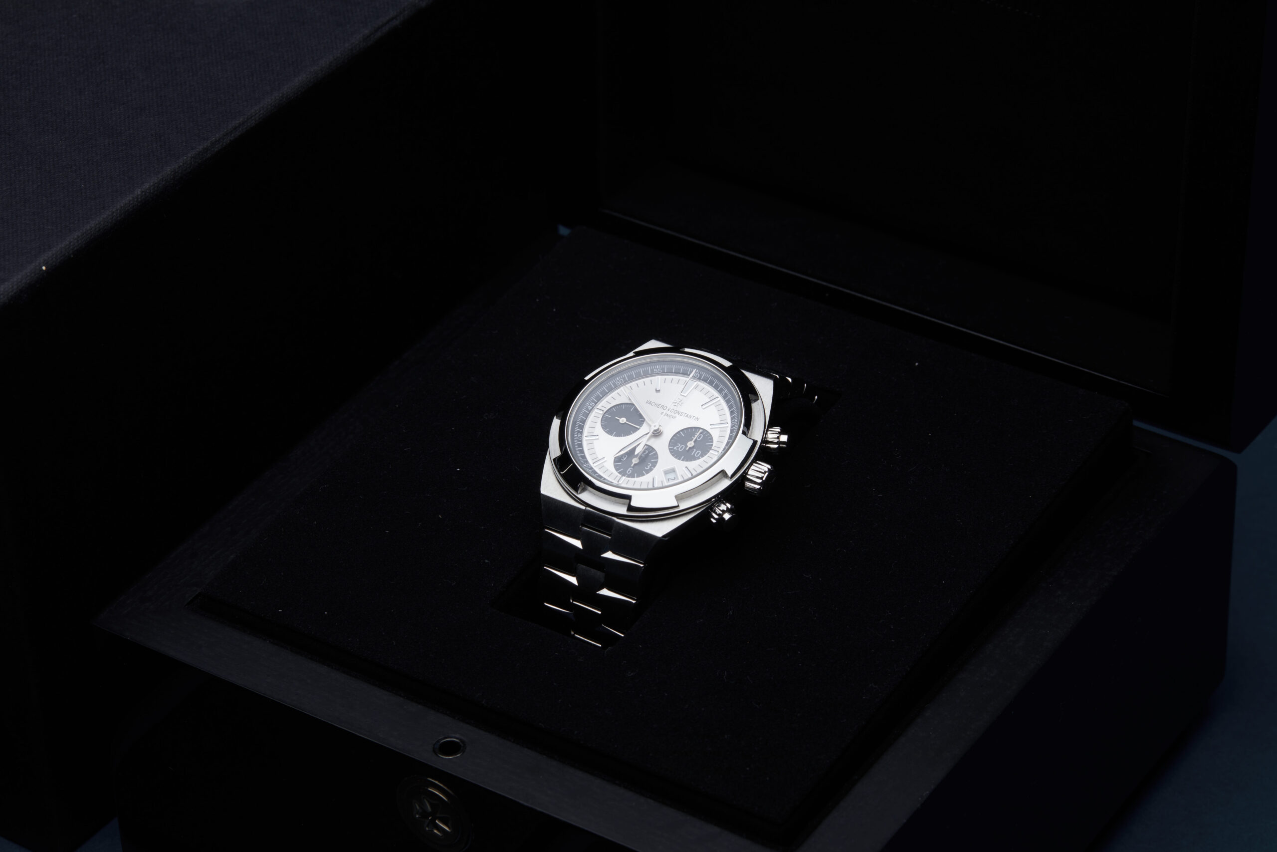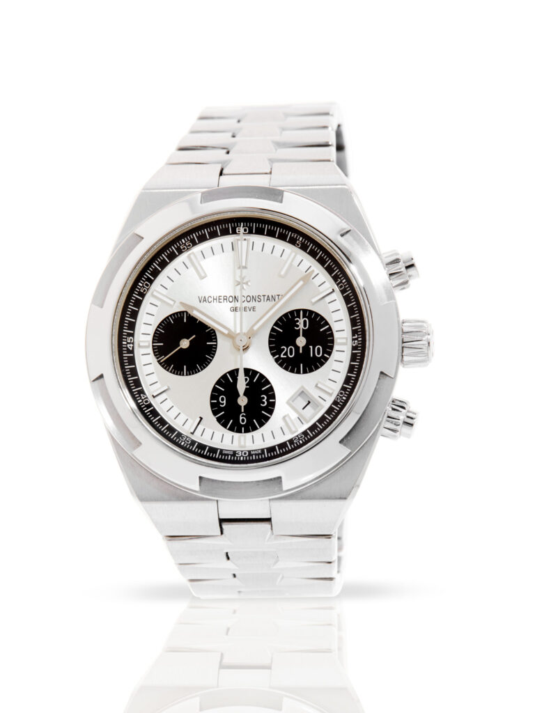 Presented in excellent condition is this outstanding example of a 2023 Vacheron Constantin Overseas Chrono 5500V/110A-B686. The watch features a 42.5mm stainless steel case, silver dial with black chronograph sub-dials, date display, luminescent hour markers and is coupled to a stainless steel bracelet with a double folding clasp. Having been professionally tested for condition and accuracy, it’s deemed to be running perfectly and is showing only very limited signs of wear.